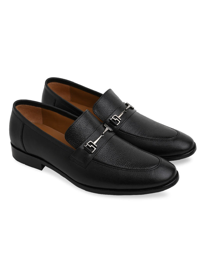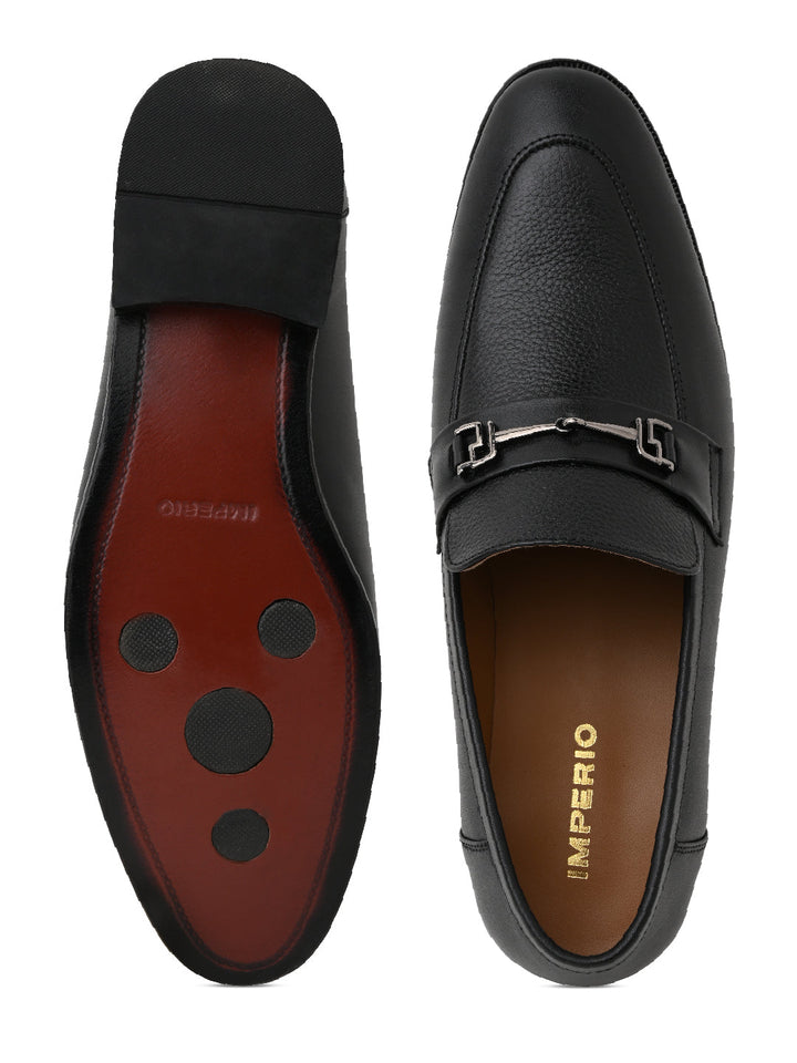 Impress at any event with these men’s formal buckled leather slip ons. Made from genuine leather with a leather sole, these open-toe slip ons feature a comfort insole for winter parties and professional settings.