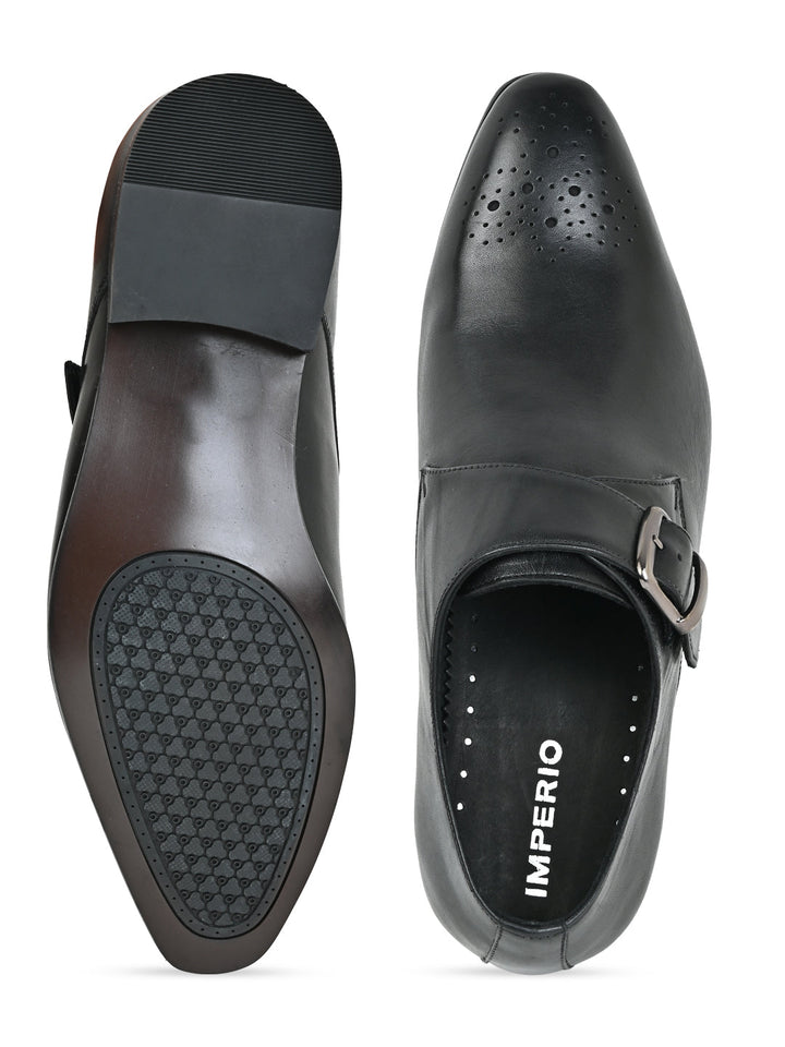 Introducing Imperio by Regal Shoes Men's Formal Leather Monk Strap Shoes—a timeless and sophisticated choice for the discerning gentleman. Crafted to perfection, these shoes seamlessly blend classic style with modern elegance for a distinguished look. Elevate your formal attire with the distinctive monk strap design. The buckle closure adds a touch of refinement, making these shoes a standout choice for formal occasions. Crafted from high-quality leather, these monk strap shoes exude luxury and durability. From boardroom meetings to weddings, these monk strap shoes effortlessly transition between various formal settings. The brogue toe design adds a classic and timeless element to these formal shoes. Whether paired with a tailored suit, dress trousers, or even business-casual attire, these monk strap shoes add a touch of sophistication to any outfit. Step into the world of refined style with Imperio Men's Formal Leather Monk Strap Shoes. Embrace the sophistication of the classic monk strap design—order your pair now and make a statement at your next formal affair!