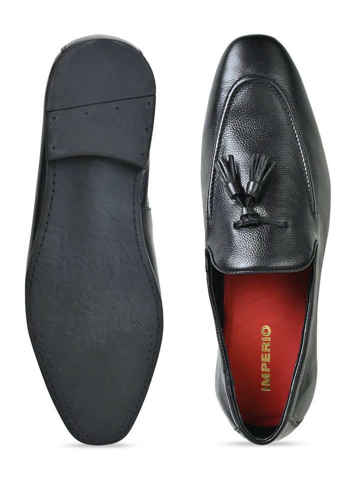 Elevate your formal attire with our Imperio by Regal Shoes' Men's Formal Leather Tassel Slip-Ons—a perfect fusion of sophistication and style. Crafted for the modern gentleman, these slip-on shoes add a touch of refinement to your formal wardrobe. Make a statement with the luxurious premium leather. The carefully crafted tassels add a touch of flair. Enjoy all-day comfort with well-cushioned insoles. The padding provides support, ensuring a comfortable experience throughout your formal events or workday. From important meetings to special occasions like parties and weddings, these handcrafted lightweight leather slip-on shoes effortlessly transition, ensuring you look polished and sophisticated for any formal setting.