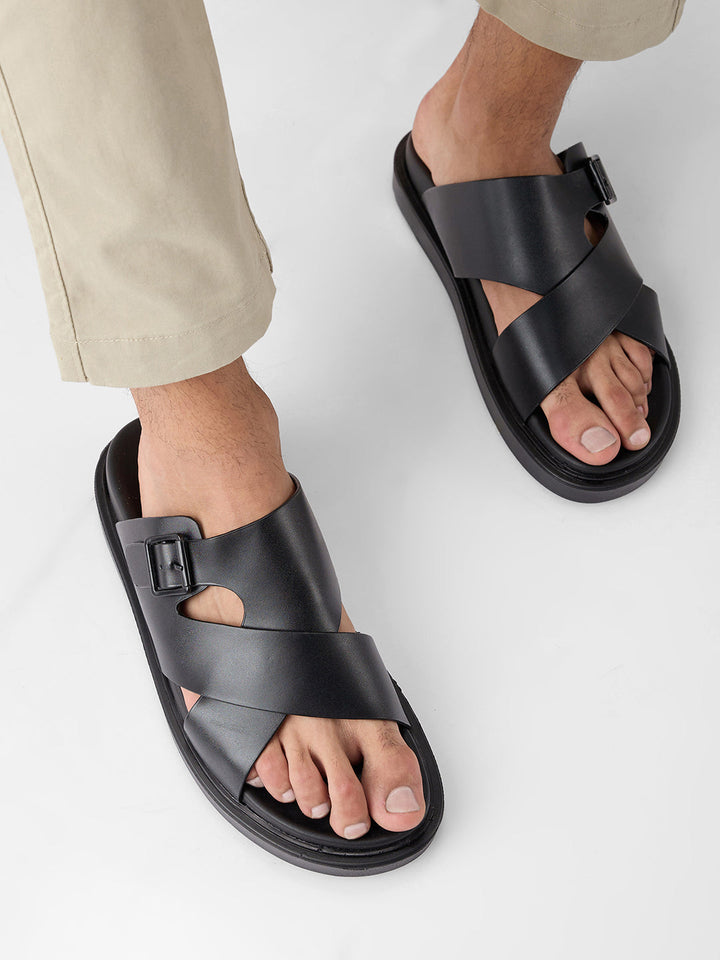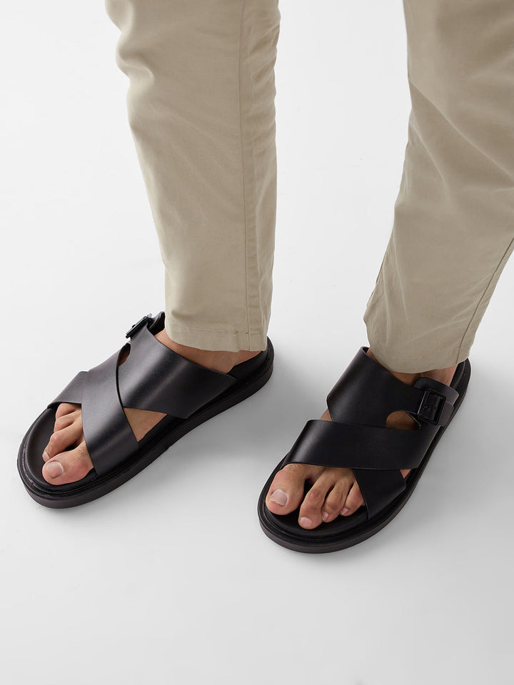Step out in comfort with these men’s smart stylish leather sandals. Featuring genuine leather, a PU sole, and a comfort insole, these open-toe slip ons are perfect for summer casual wear.
