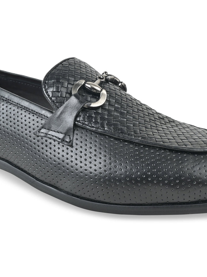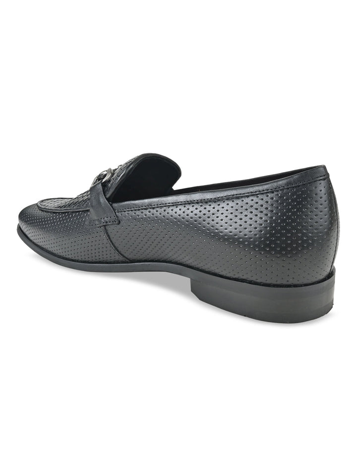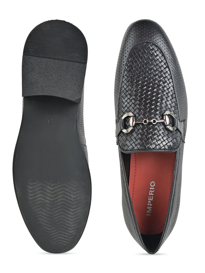 Imperio By Regal Black Men Textured Leather Buckled Slip Ons