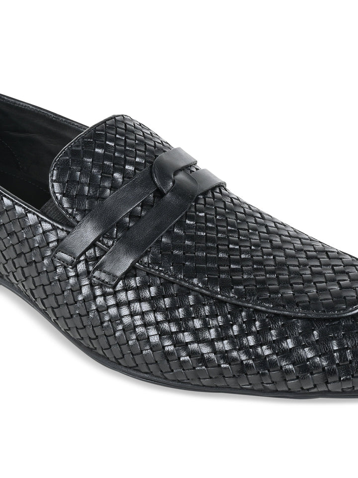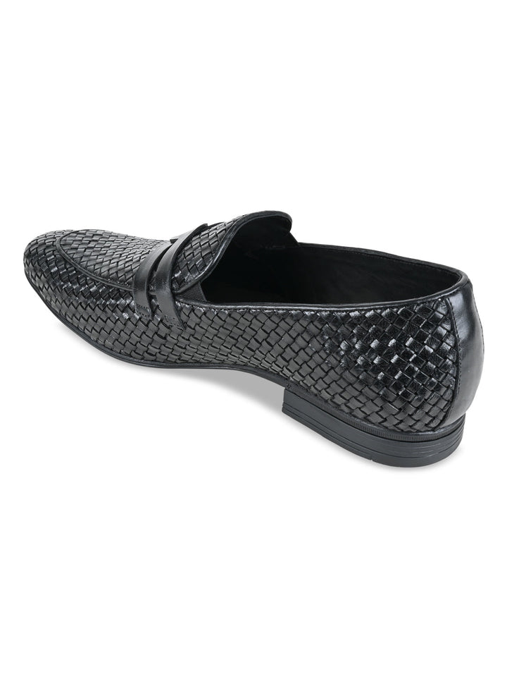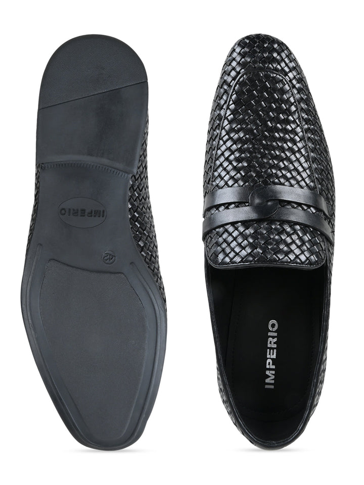 Imperio By Regal Black Men Woven Leather Formal Slip Ons