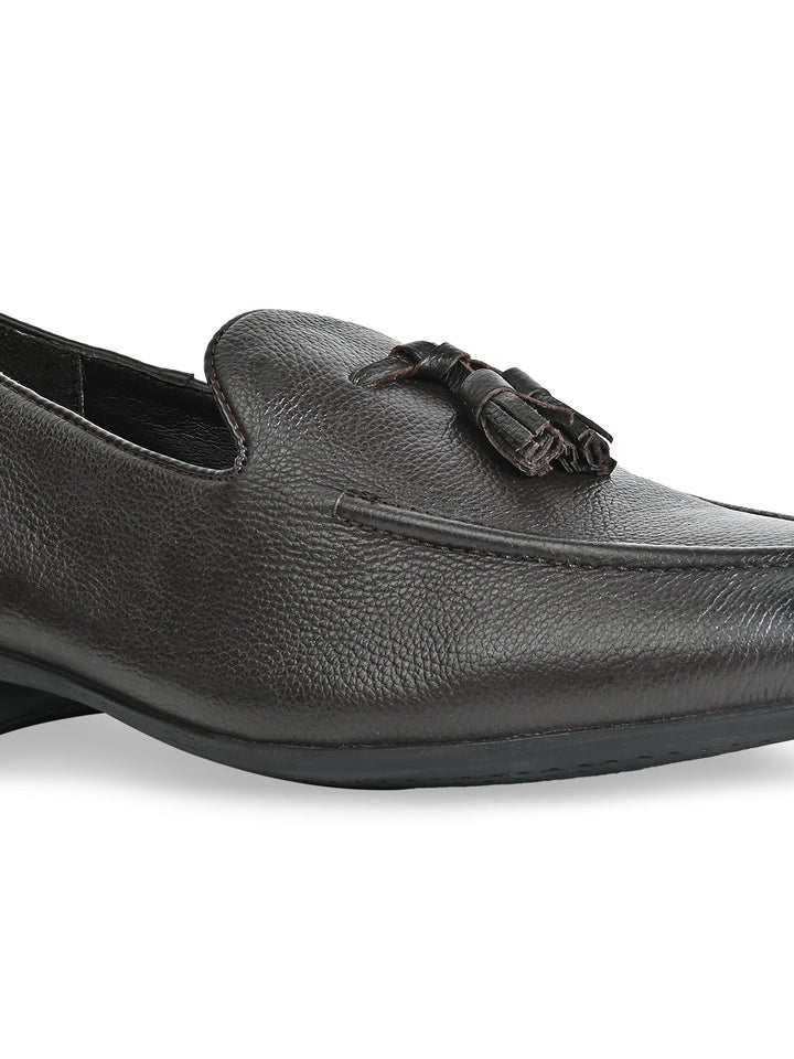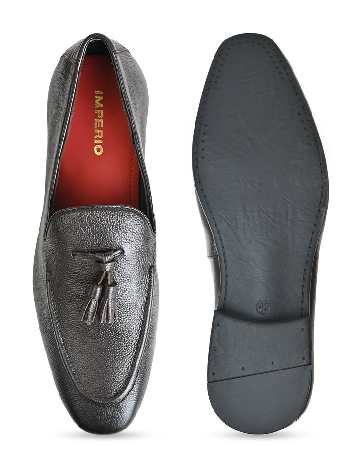 Elevate your formal attire with our Imperio by Regal Shoes' Men's Formal Leather Tassel Slip-Ons—a perfect fusion of sophistication and style. Crafted for the modern gentleman, these slip-on shoes add a touch of refinement to your formal wardrobe. Make a statement with the luxurious premium leather. The carefully crafted tassels add a touch of flair. Enjoy all-day comfort with well-cushioned insoles. The padding provides support, ensuring a comfortable experience throughout your formal events or workday. From important meetings to special occasions like parties and weddings, these handcrafted lightweight leather slip-on shoes effortlessly transition, ensuring you look polished and sophisticated for any formal setting.