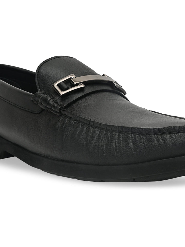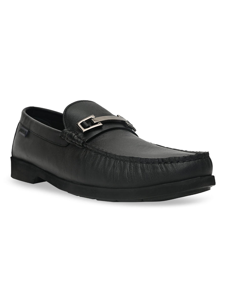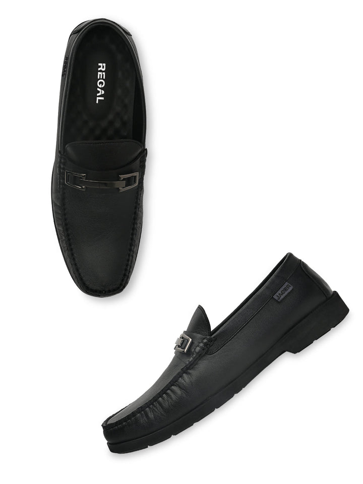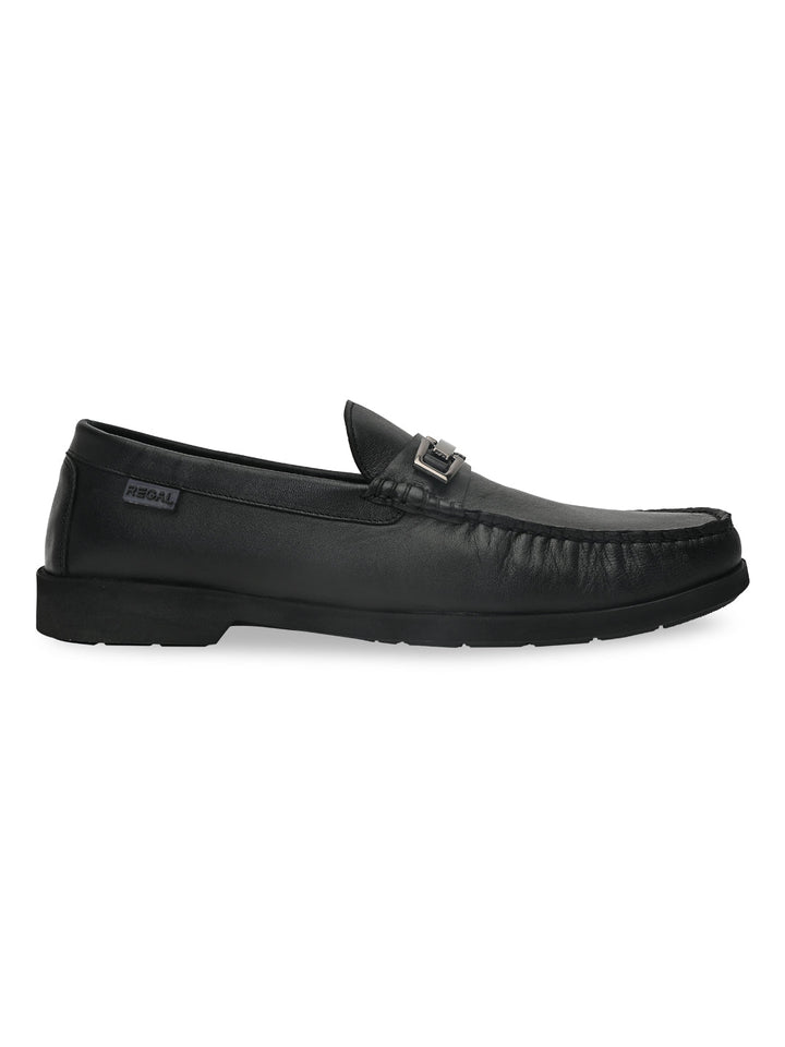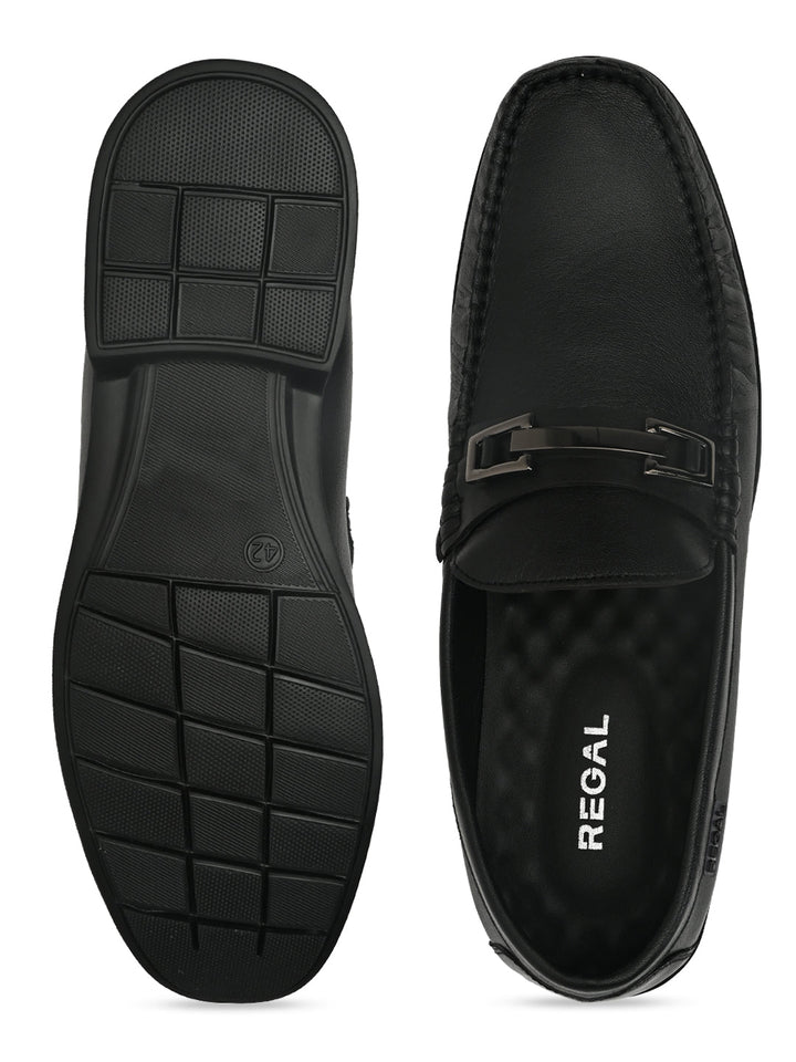 Regal Black Men Casual Leather Buckled Slip Ons