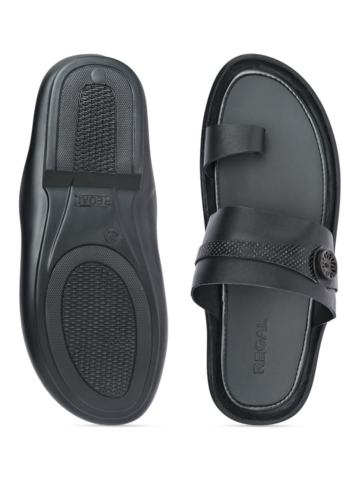 Regal Black Men Casual Leather Sandals