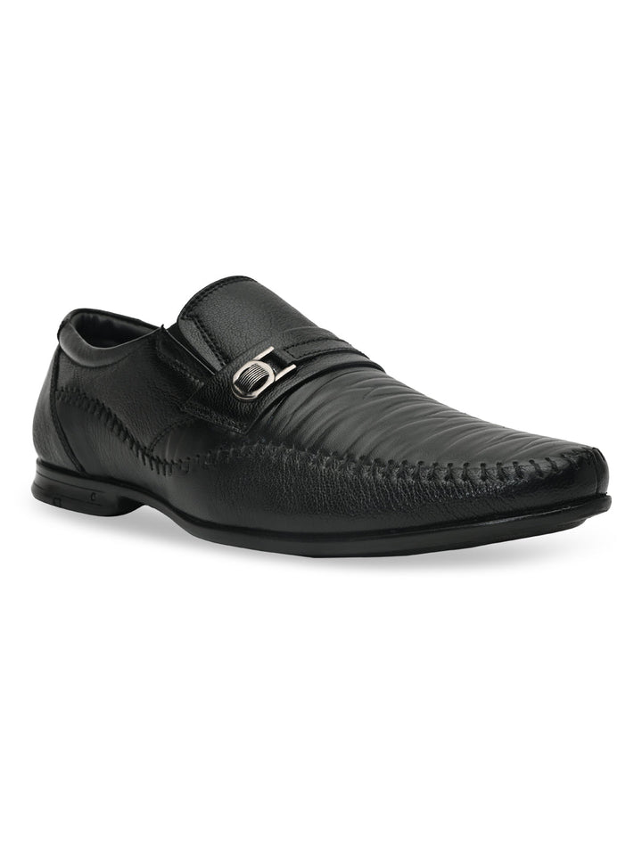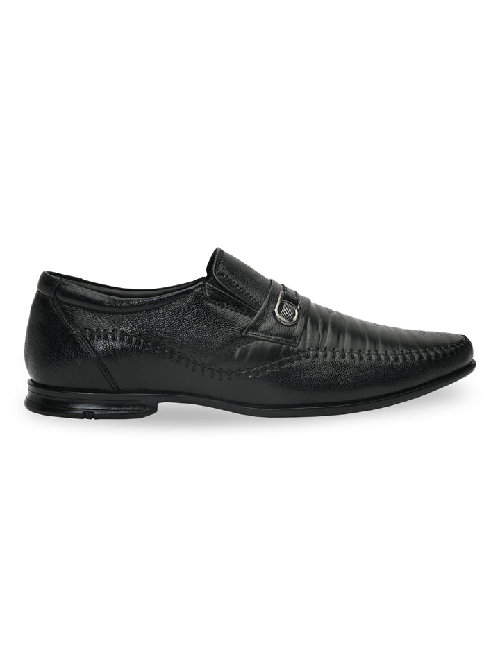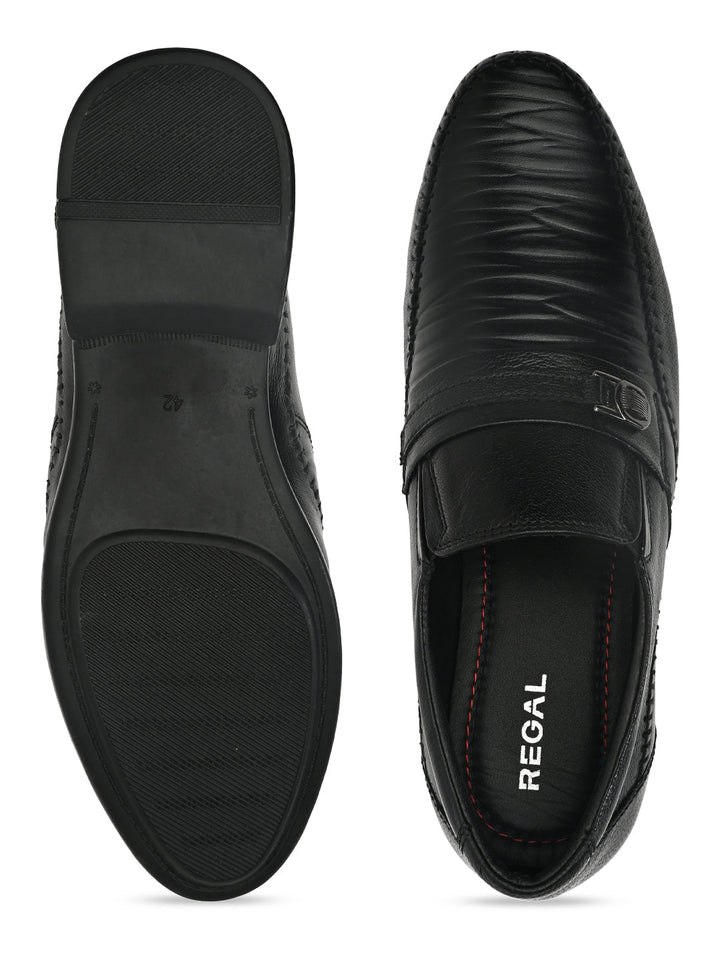 Regal Black Men Formal Textured Leather Slip Ons