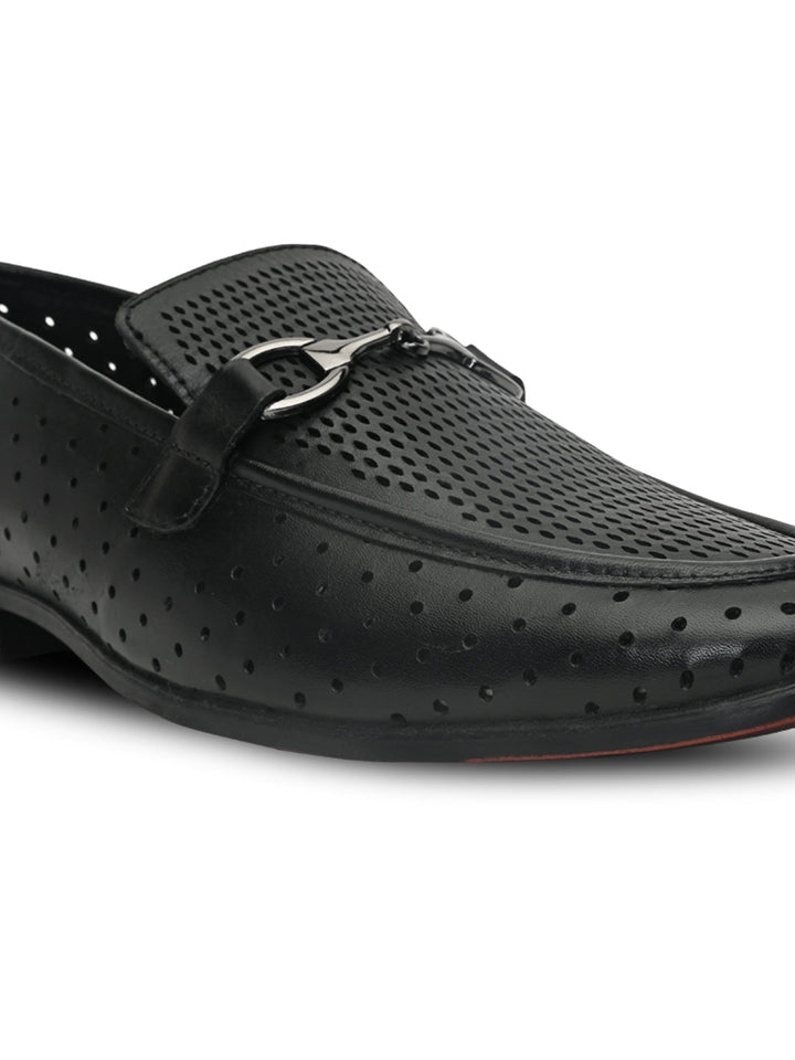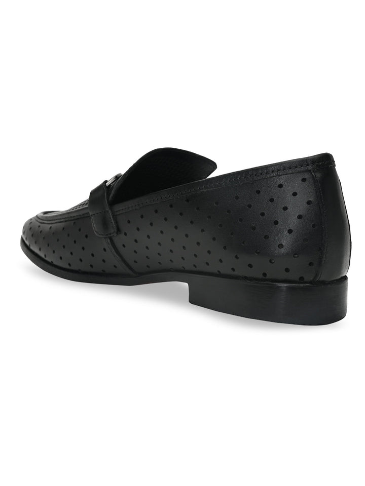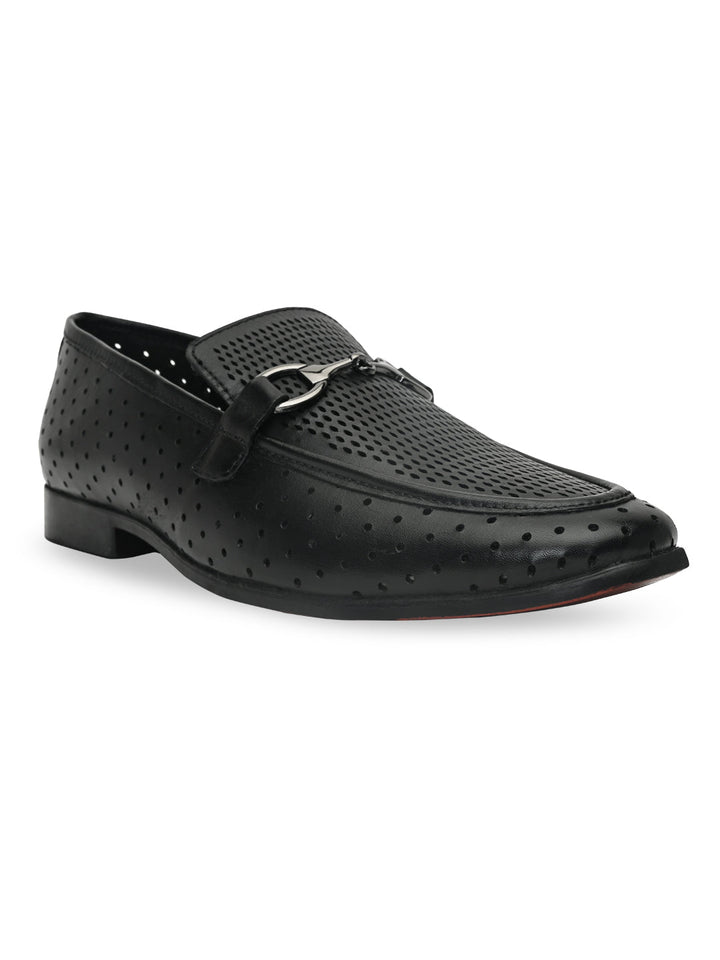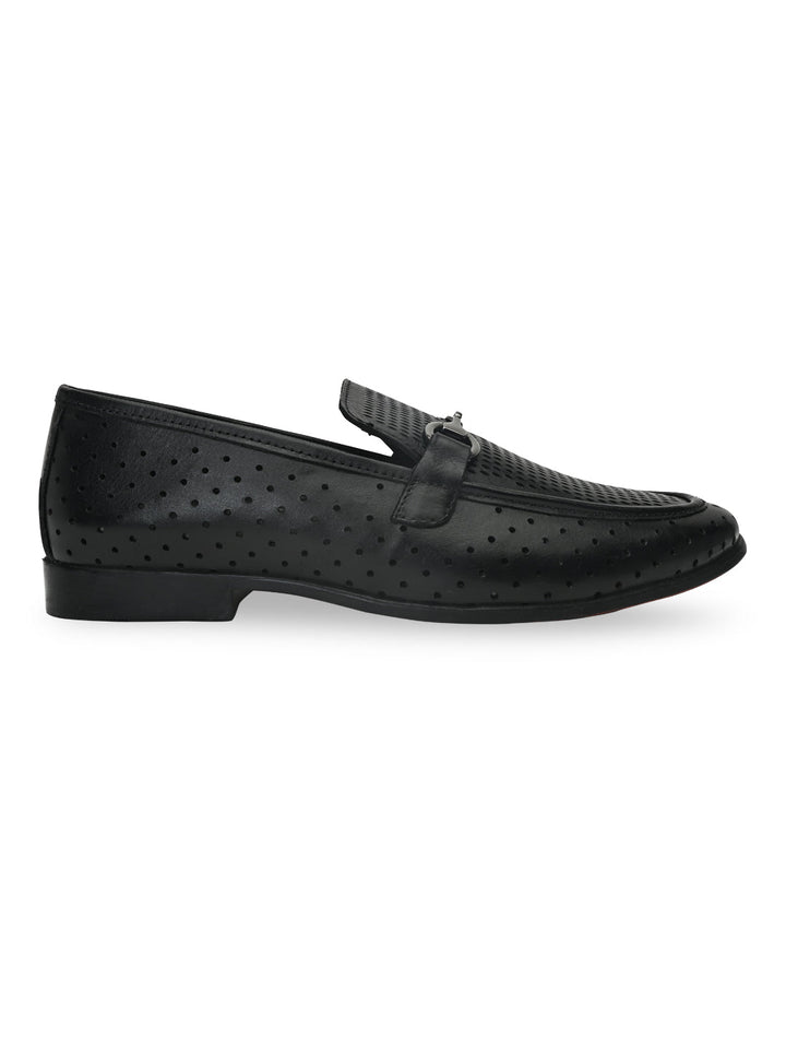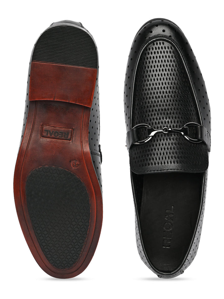 Regal Black Men Laser Cut Textured Leather Slip Ons