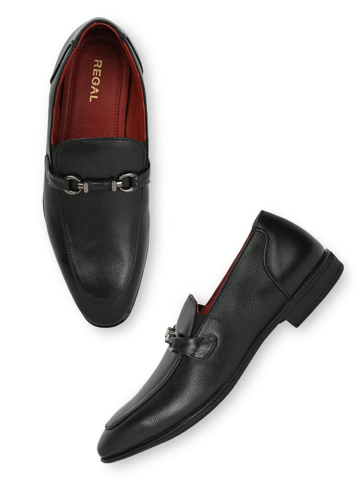 Regal Men's Leather Formal Buckled Slip-On Shoes. Crafted with precision and attention to detail, these slip-ons redefine formal elegance. The buckled design adds a touch of modern flair, seamlessly blending contemporary style with timeless craftsmanship. The premium leather construction ensures not only durability but also a luxurious feel with every step. Slip into unparalleled comfort and make a lasting impression at any formal occasion. Whether you're attending a corporate event or a special celebration, these formal slip-ons elevate your ensemble, showcasing your discerning taste in footwear. Lightweight construction with extra cushioned comfort insoles.