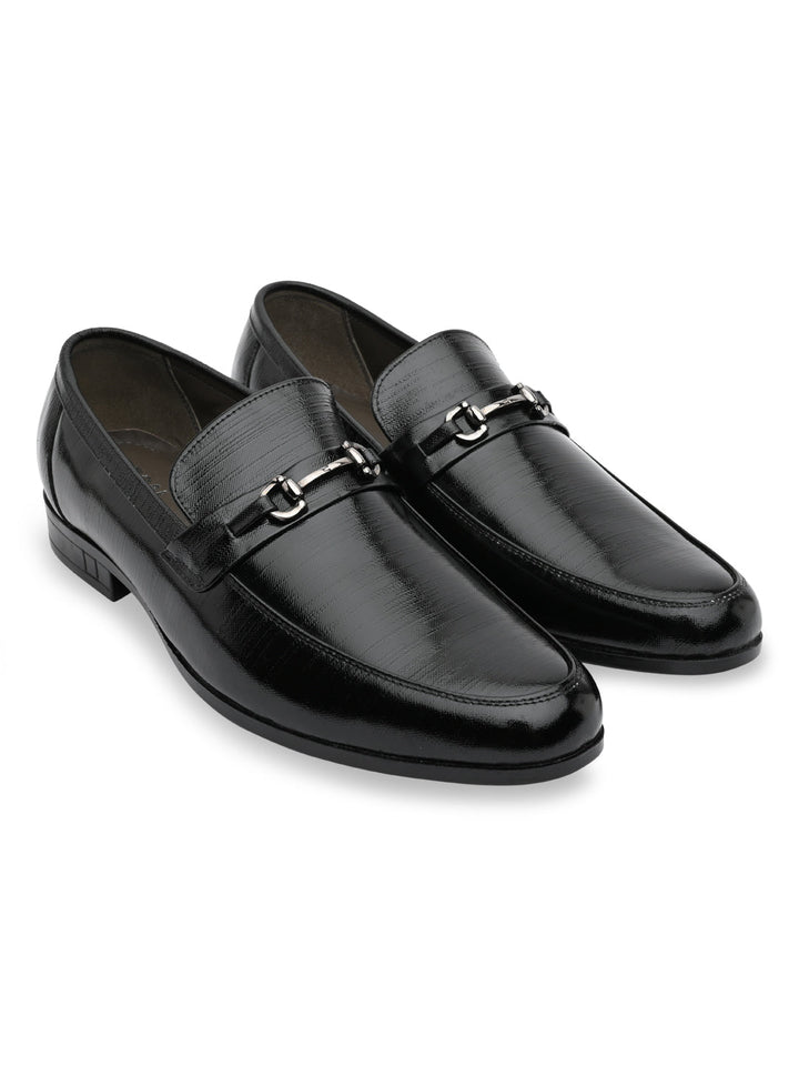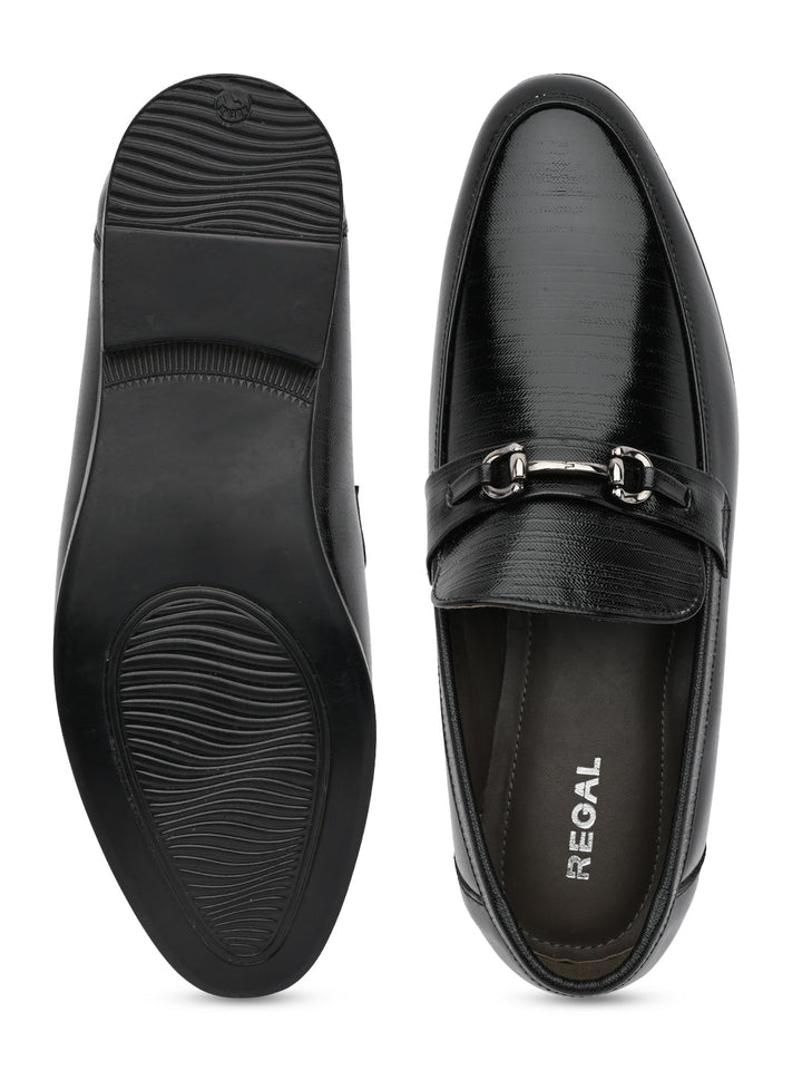 Crafted with a polished glossy finish, these men's leather slip-on shoes from Regal Shoes elevate your formal wardrobe with ease. The sleek buckle detailing adds a bold, refined accent that stands out at weddings and high-style gatherings. Lightweight and smooth inside, they keep you looking sharp while staying comfortable through long events. Ideal for men who want footwear that truly complements a crisp suit.