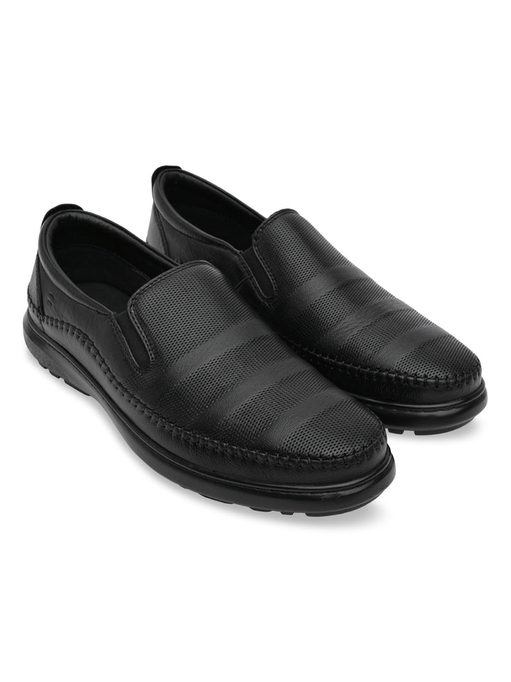 A bold patterned leather finish gives these men's slip-on shoes a fresh and confident look. They slide on easily and add an instant upgrade to jeans or chinos — no effort required. Perfect for men who like their casual style to stand out. They wor eually well in professional or semi-professional settings.