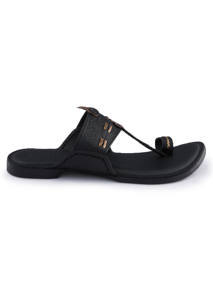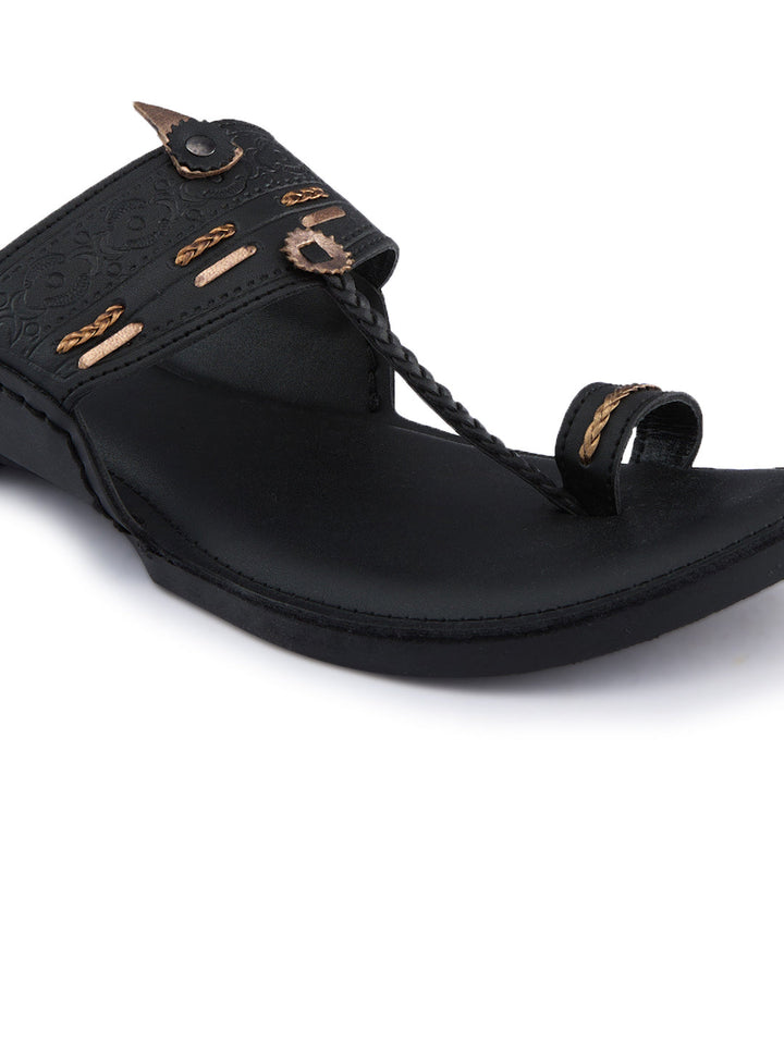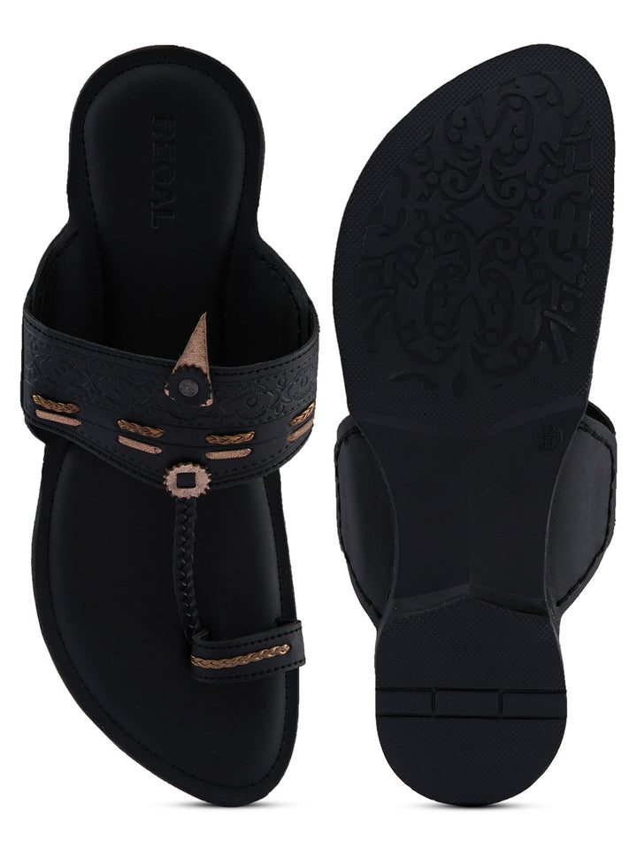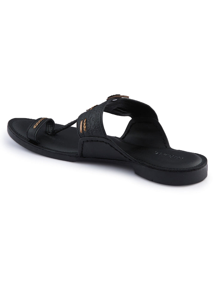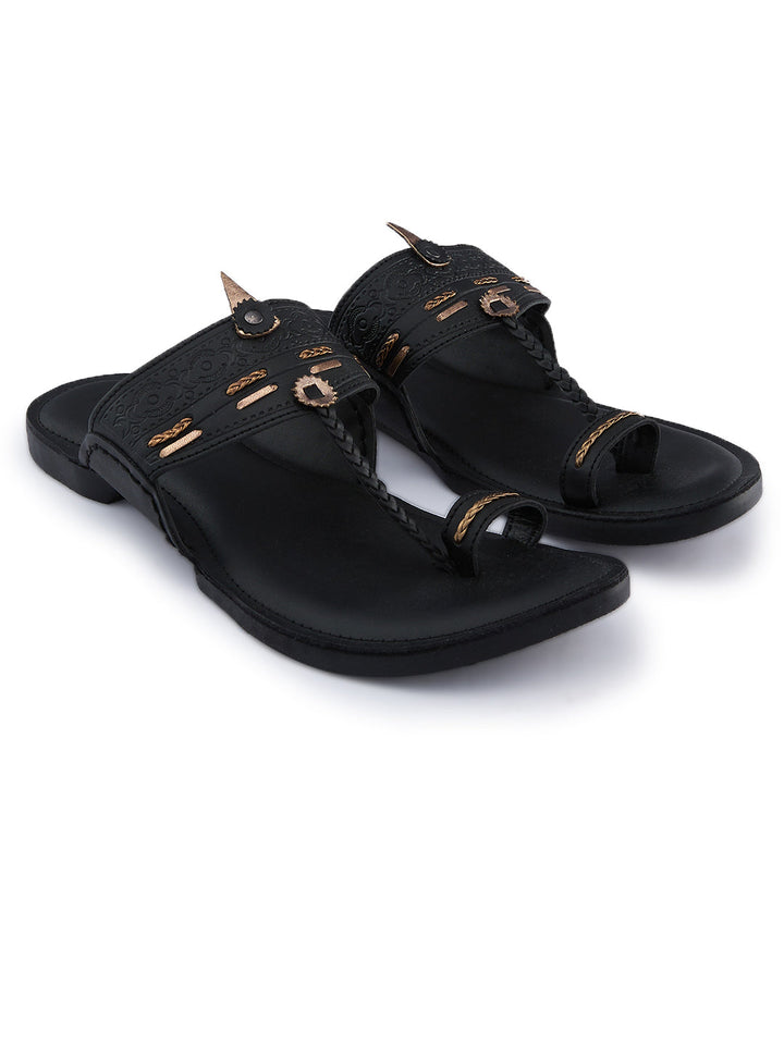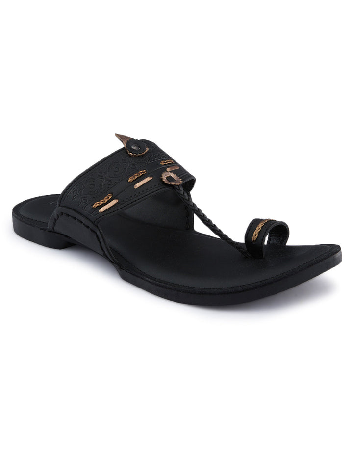 Intricate embossed detailing adds a rich character to these premium leather Kolhapuris. Designed for standout ethnic dressing, they ensure comfort while keeping your style rooted in heritage. The cushioned kolhapuri is an enhanced version of the classic traditional Indian men's footwear design that works for weddings, pujas and festive occasions.