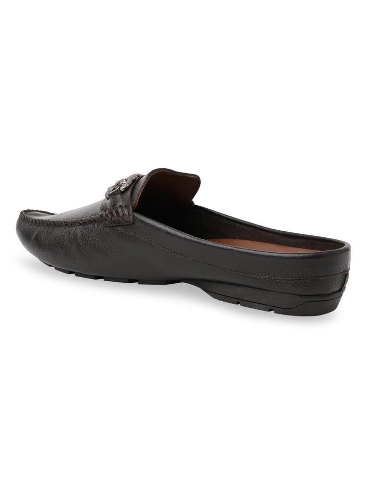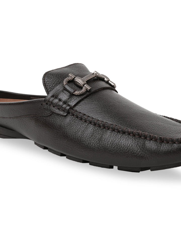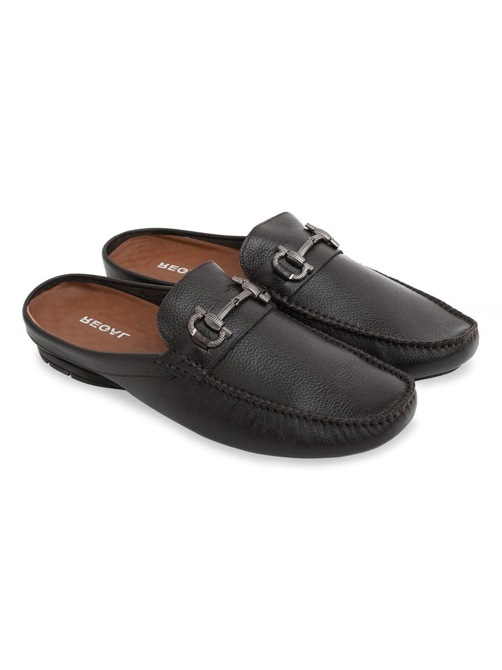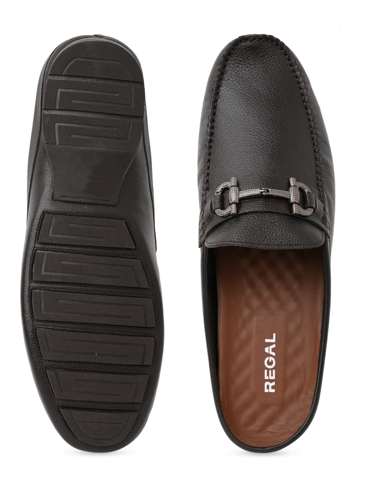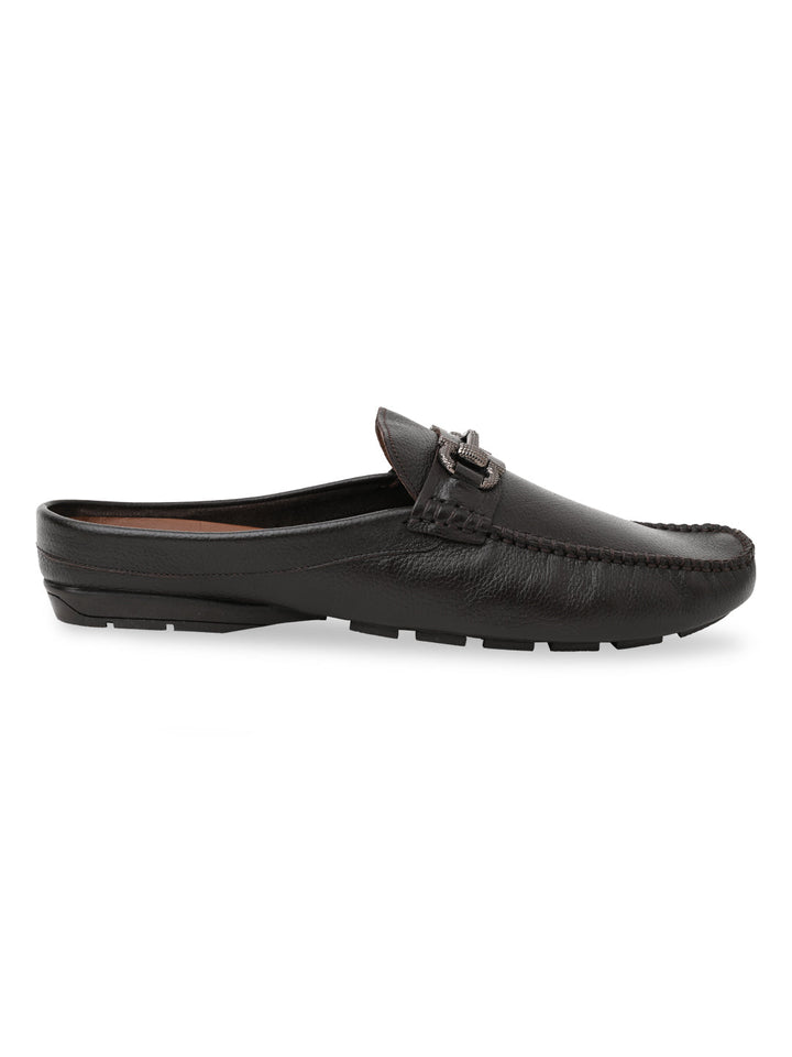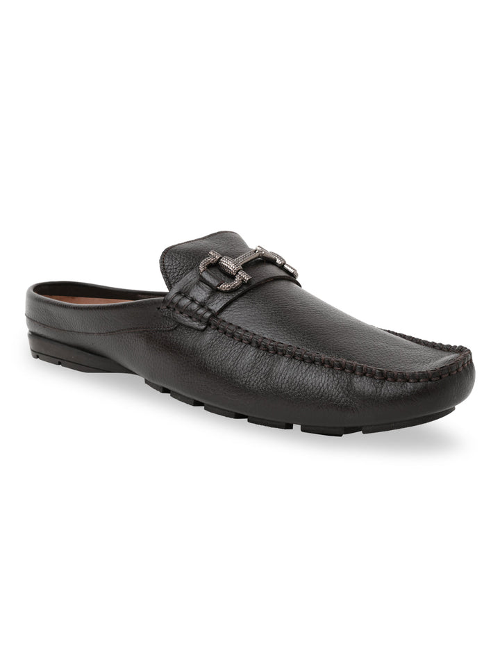 Try the unique style of these men’s leather buckled mules. Crafted from genuine leather with a rubber sole, these closed-toe mules offer slip-on convenience and comfort insole—perfect for casual summer wear.