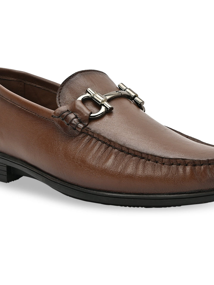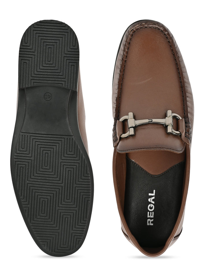 Regal Brown Men Leather Buckled Slip Ons