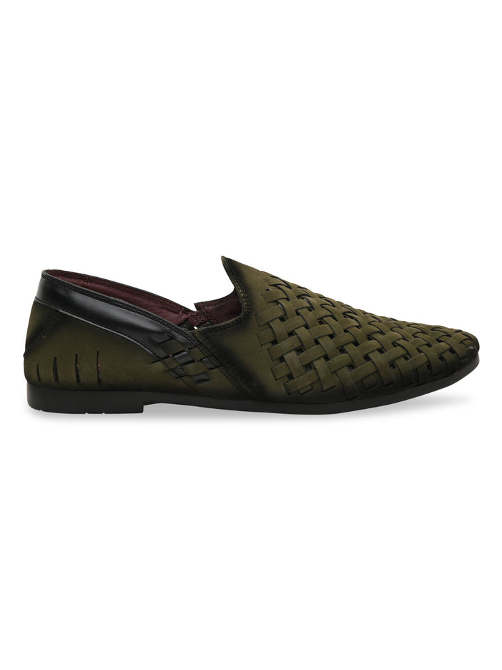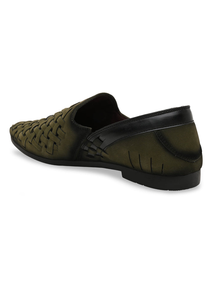 Celebrate tradition with these men’s woven mojari style slip ons. Synthetic leather with a TPR sole, closed-toe nagra style, lightweight and perfect for festive and wedding occasions.