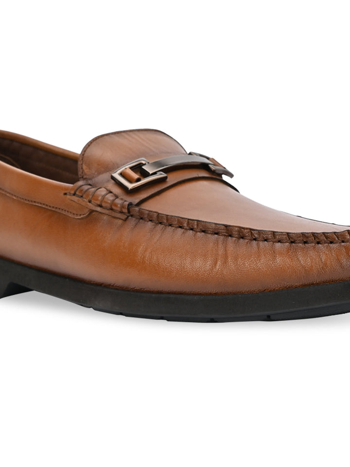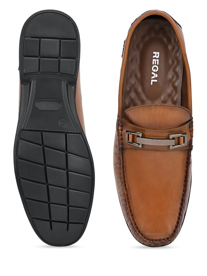 Regal Tan Men Casual Leather Buckled Slip Ons