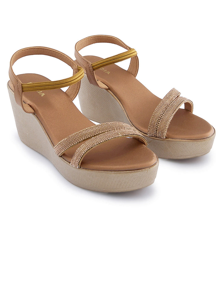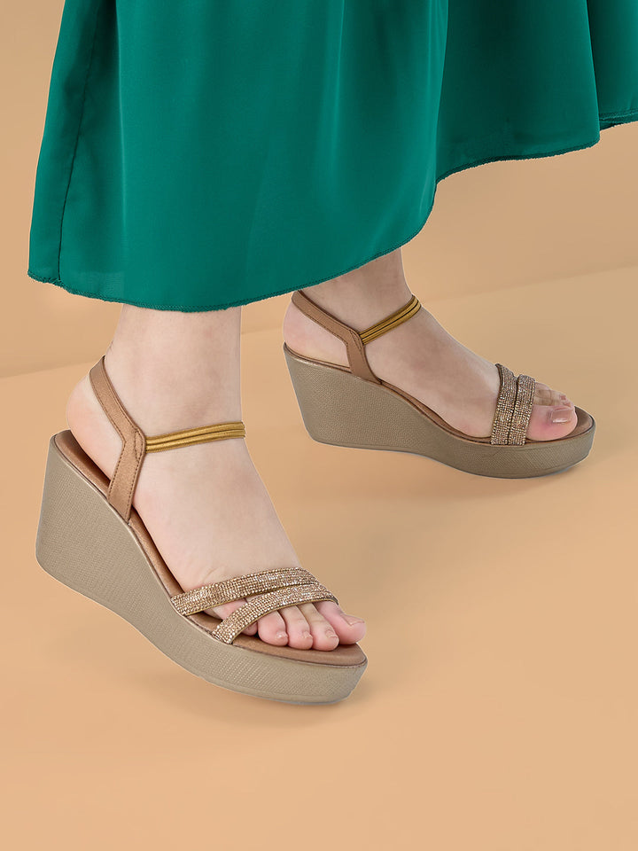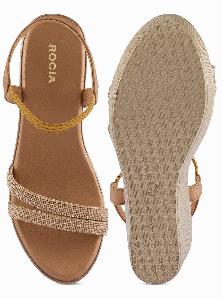 Add a sparkle to your step with these diamond-embellished platform sandals. The shimmering accents elevate your outfit, making them perfect for parties or festive gatherings. Their cushioned sole keeps you comfortable while you shine. A statement piece that combines glamour with practicality.