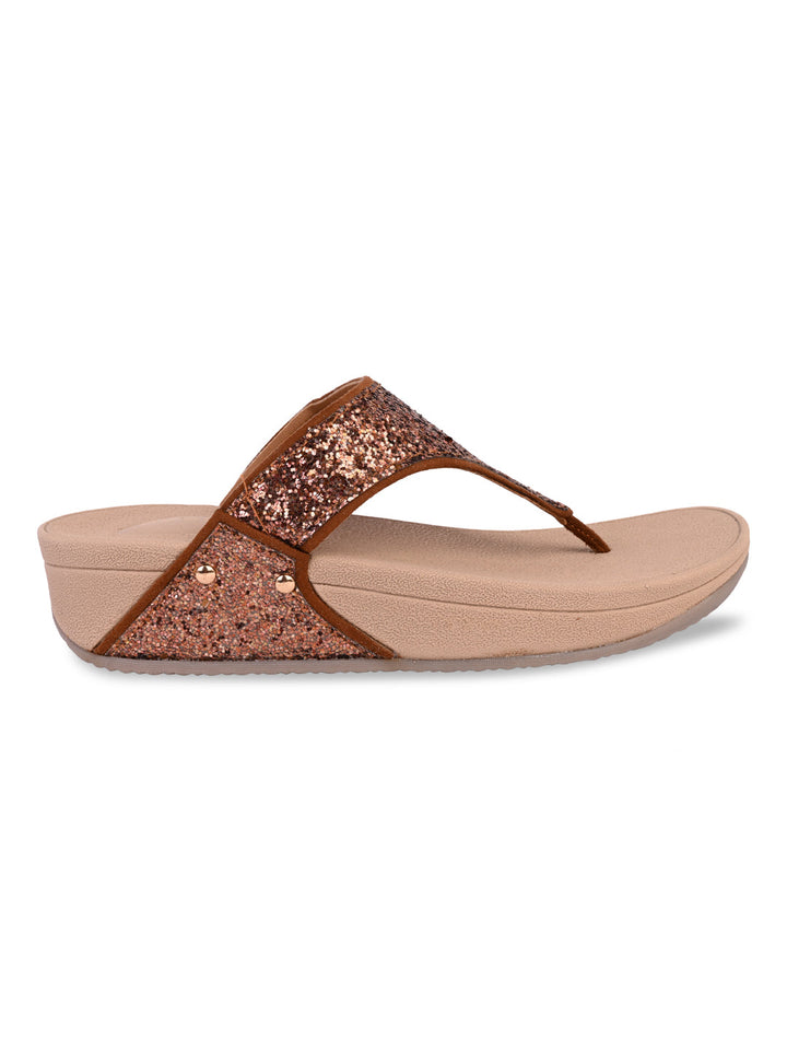 Add a sparkle to your look with Women Shimmer Flats from Rocia by Regal, designed with a glossy synthetic finish and supported by a durable TPR sole. Featuring a strapless silhouette and open-toe design, these wedge-heeled sandals strike the perfect balance between chic and comfortable. Ideal for casual gatherings, summer events, or festive evenings, they bring just the right amount of shine to any outfit.