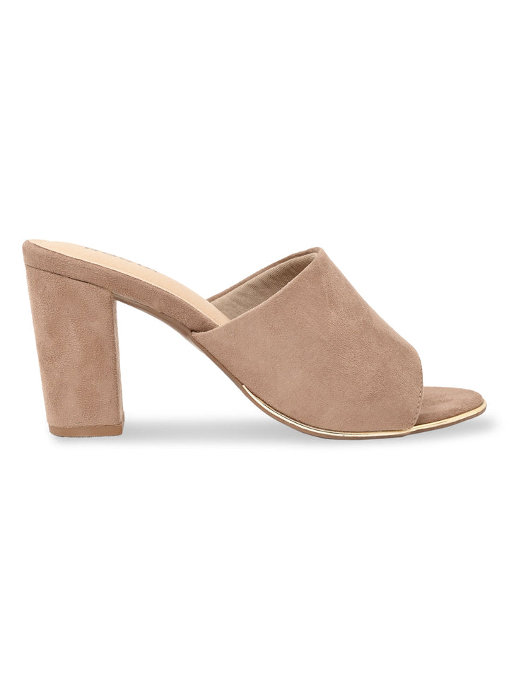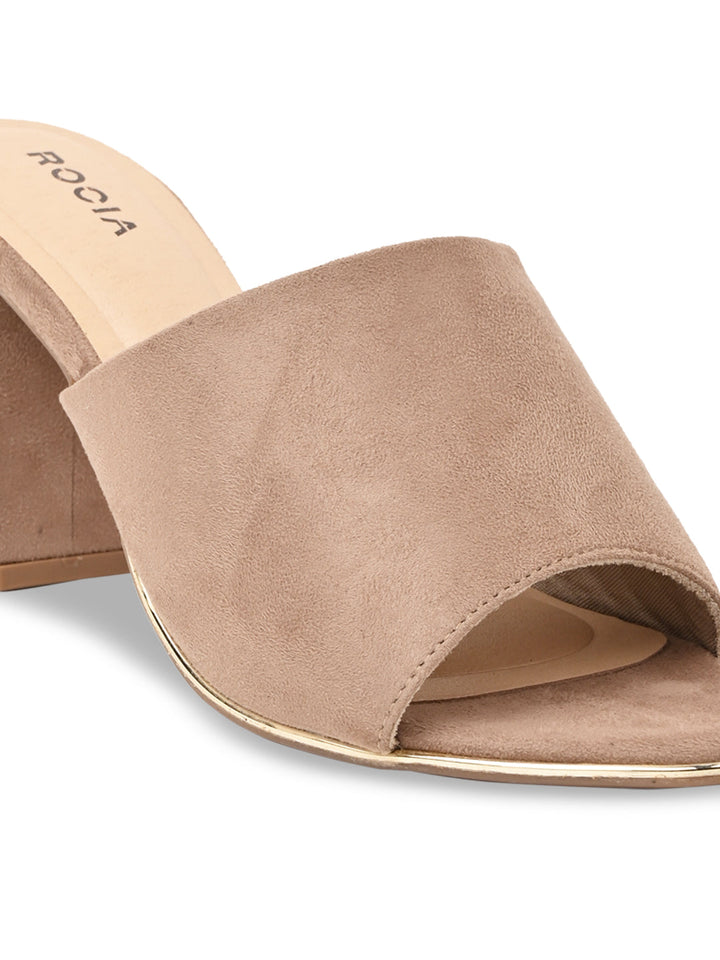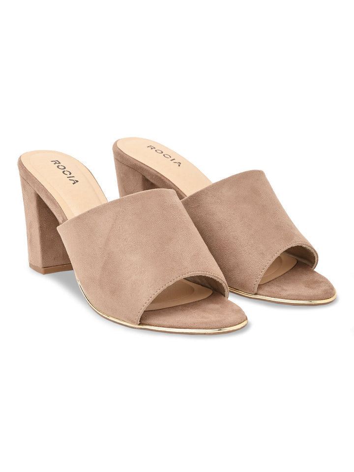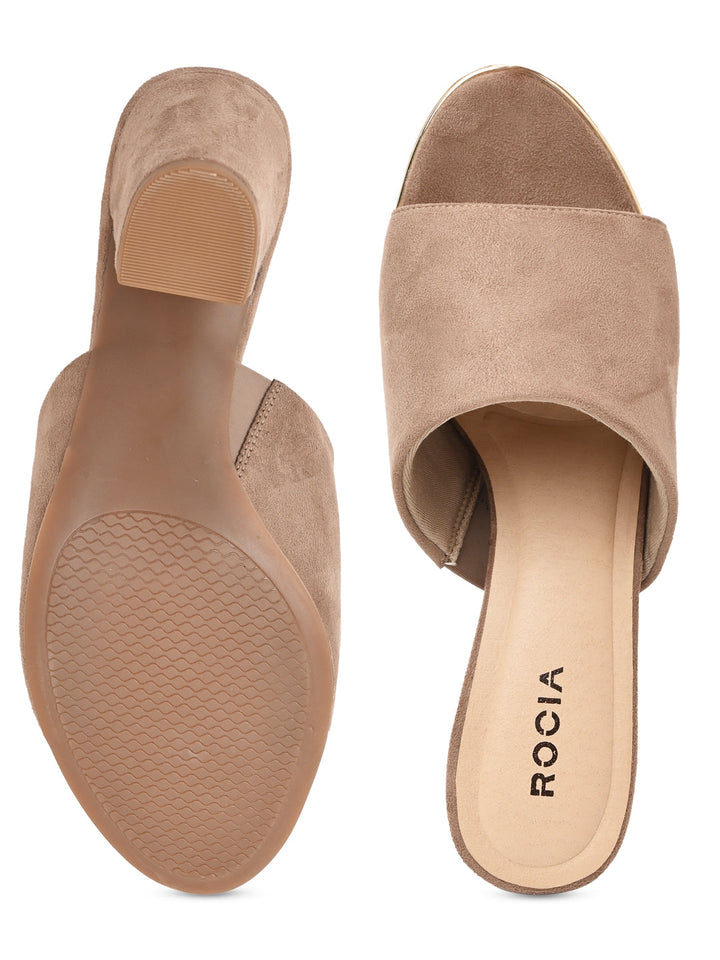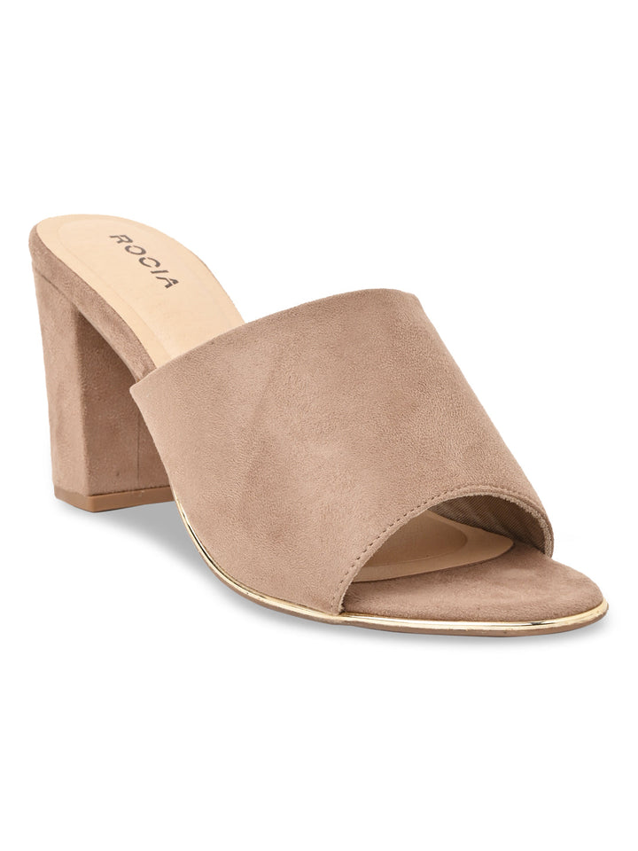 Enjoy timeless style with Rocia by Regal Classic Suede High Block Heel Slip Ons in Beige and Black. Featuring synthetic uppers with rubber soles, these 3-inch block heels provide style and comfort in a slip-on design, suitable for casual summer wear.