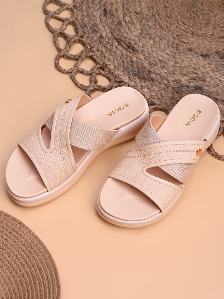 Step into everyday ease with Women Comfort Stylish Flats from Rocia by Regal, designed with a smooth synthetic upper and cushioned PU sole for unbeatable comfort. Featuring a strapless design and chic open-toe style, these wedge-heeled sandals balance fashion with functionality. Perfect for casual wear and summer outings, they add effortless charm to any look while keeping you comfortable all day.