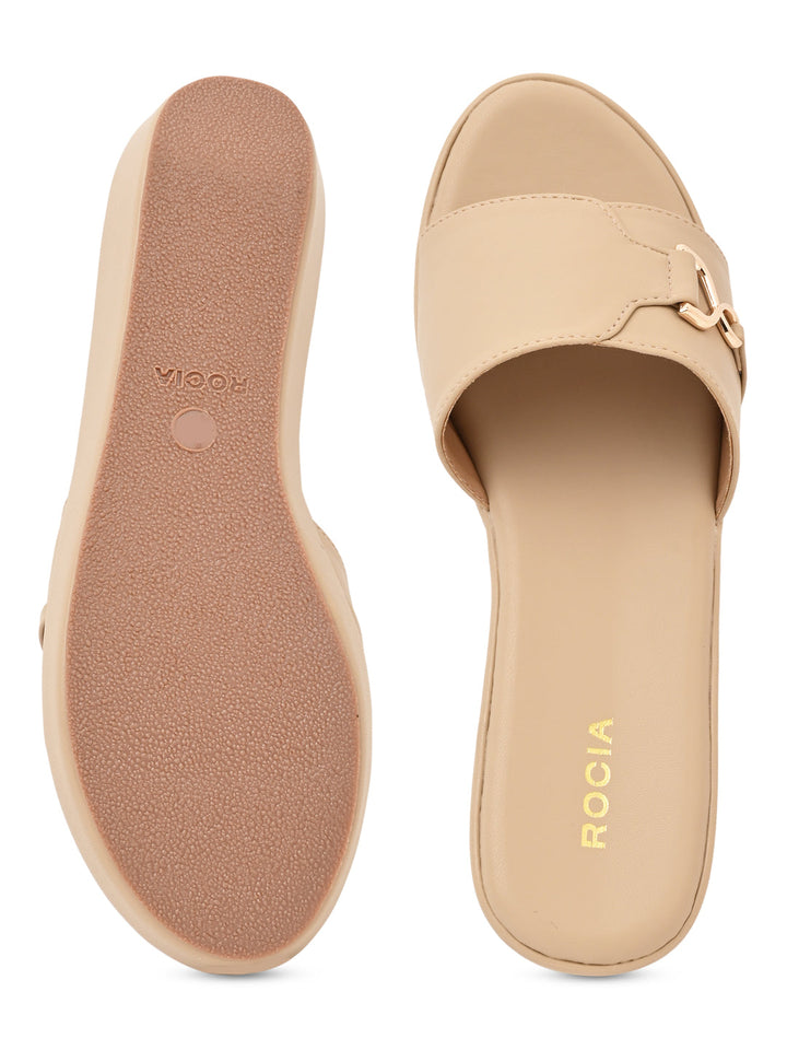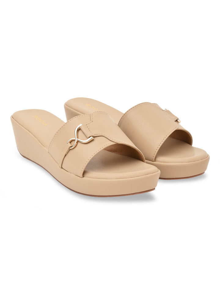 Experience cozy summer fashion with Rocia by Regal Beige Women Comfort Wedge Heels. These 2-inch wedge sandals are made with synthetic uppers and PU soles, slip-on closure, and open round toes, ideal for casual and comfortable wear.