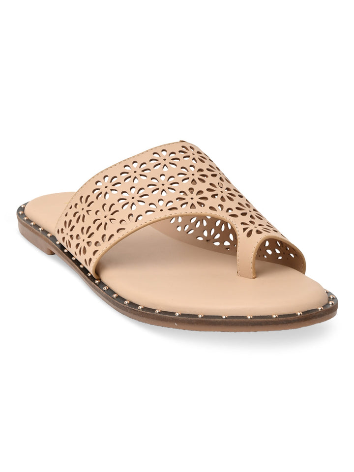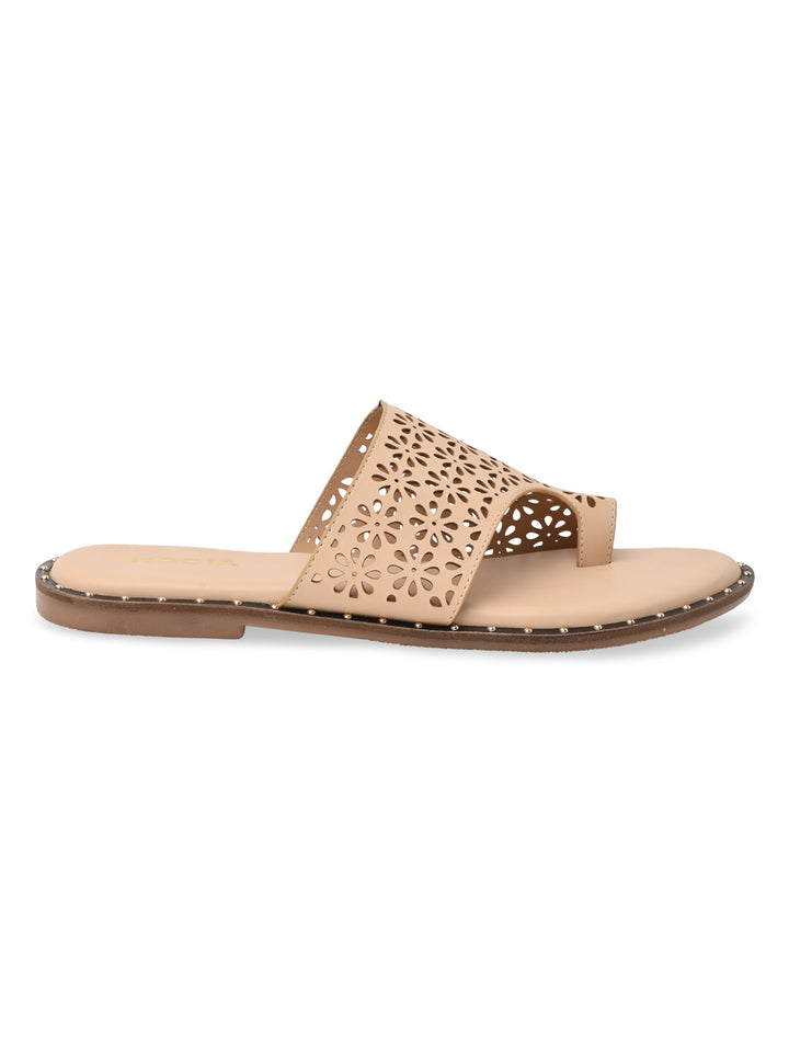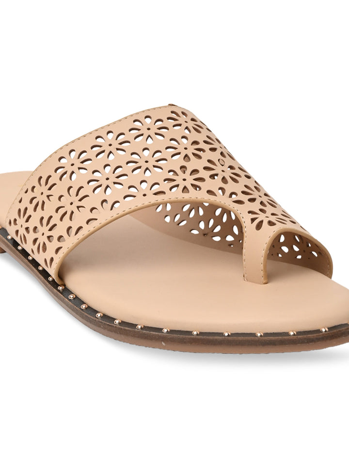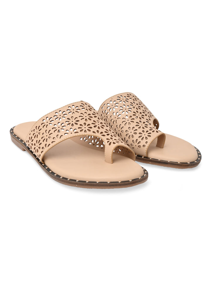 Stay stylish and comfortable with Rocia by Regal Women One Toe Laser Cut Flats. Made with synthetic uppers and TPR soles, these slip-on flat sandals feature an open round toe and 1.5-inch heel, perfect for summer casual wear.