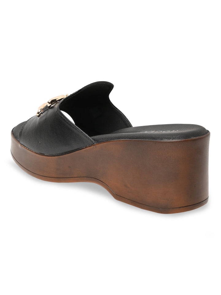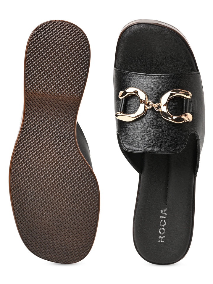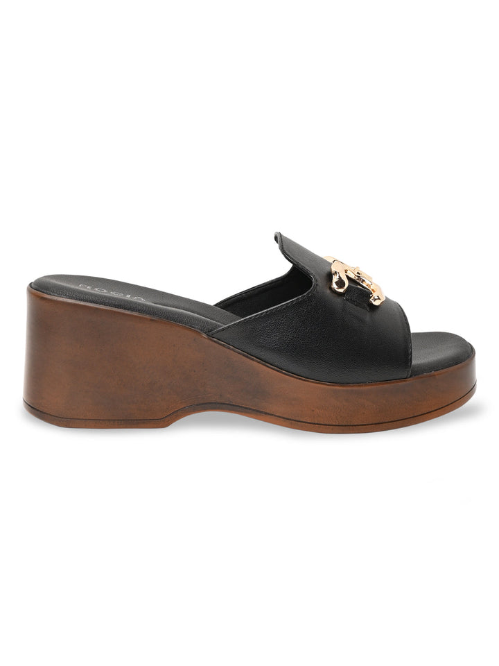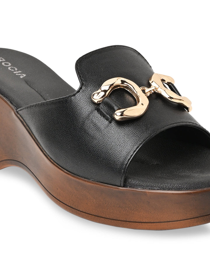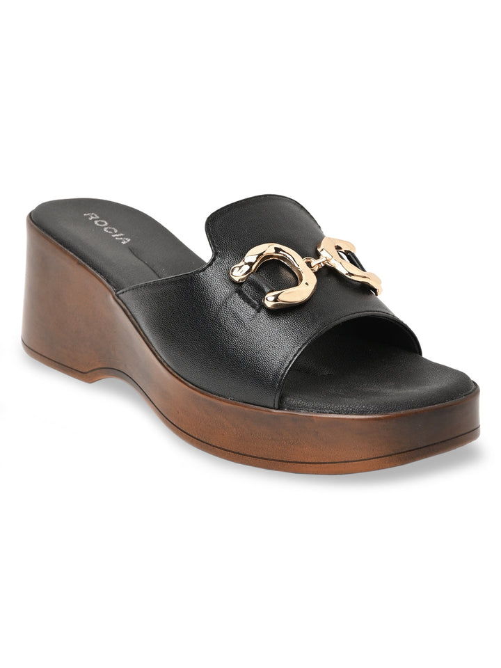 Step up your summer wardrobe with Rocia by Regal Women Classic Buckled Platforms in Black and Cream. These 3-inch synthetic platform heels feature PU soles, secure buckle closures, slip-on style, and open round toes, perfect for casual and online exclusive buys.