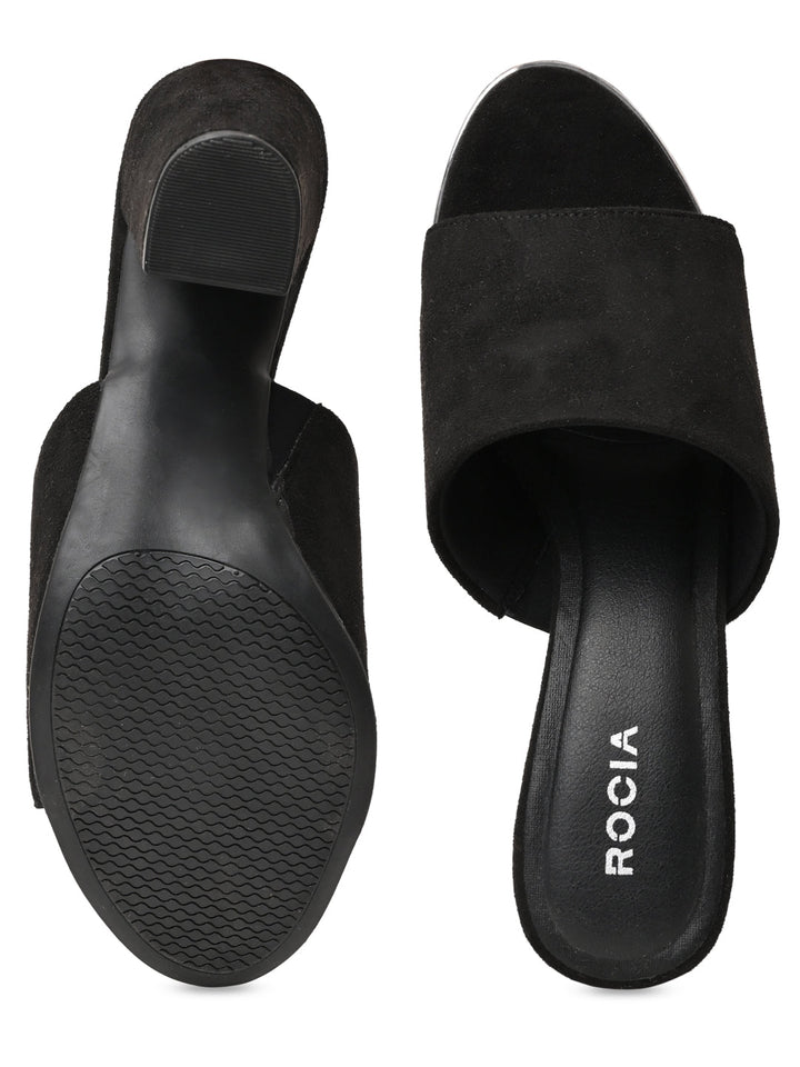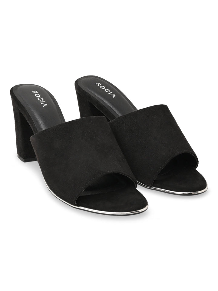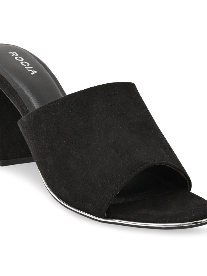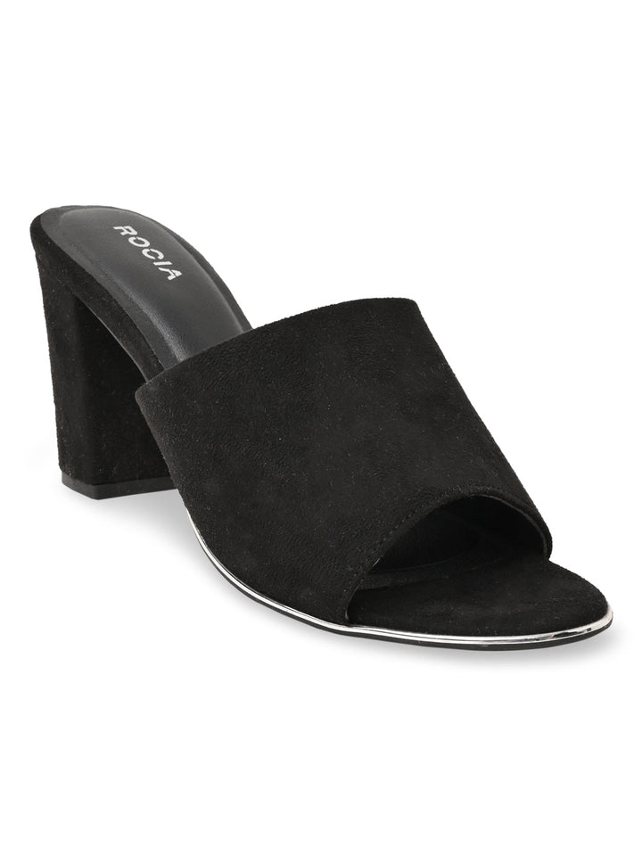 Enjoy timeless style with Rocia by Regal Classic Suede High Block Heel Slip Ons in Beige and Black. Featuring synthetic uppers with rubber soles, these 3-inch block heels provide style and comfort in a slip-on design, suitable for casual summer wear.