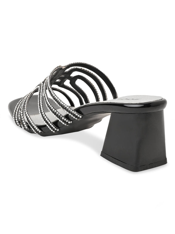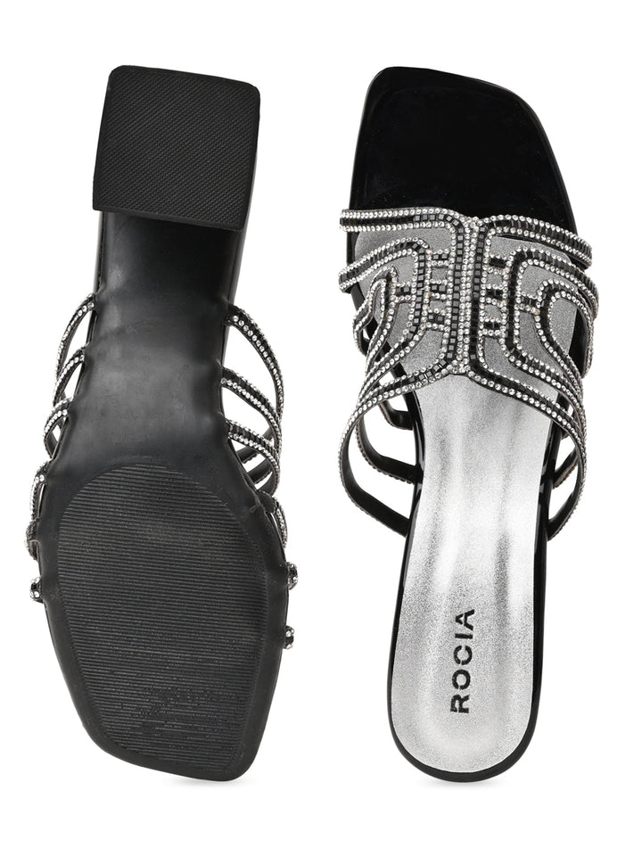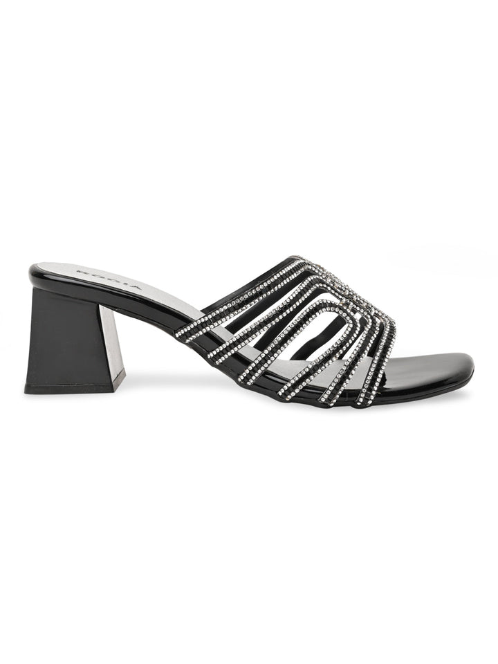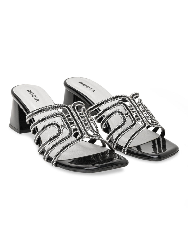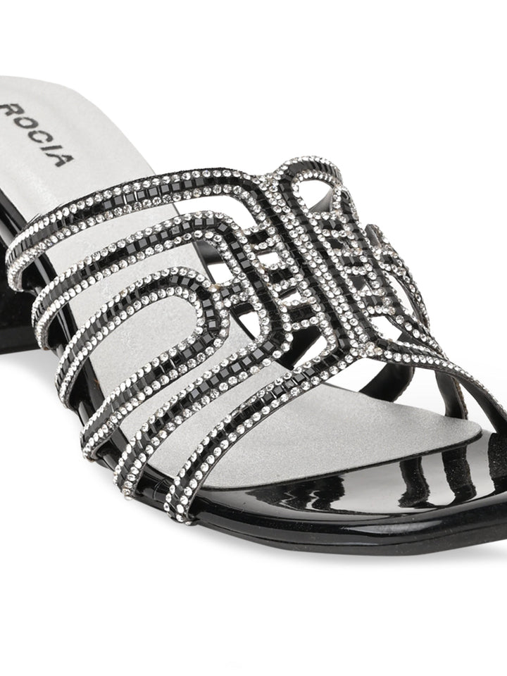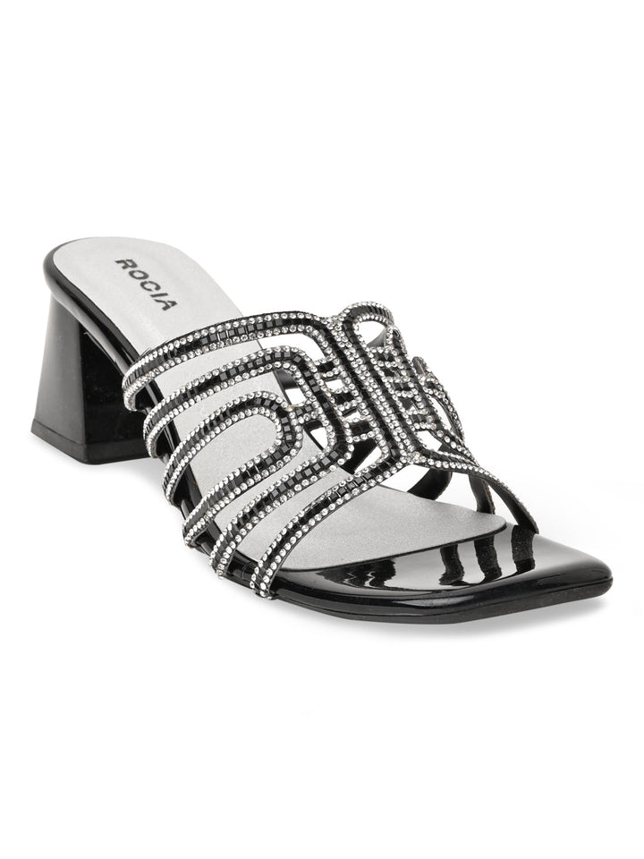 Dazzle at every event with Rocia by Regal Women Diamond Studded Block Heels . These heels combine synthetic uppers with TPR or rubber soles in a slip-on design with open round toe, fitting for parties and weddings.