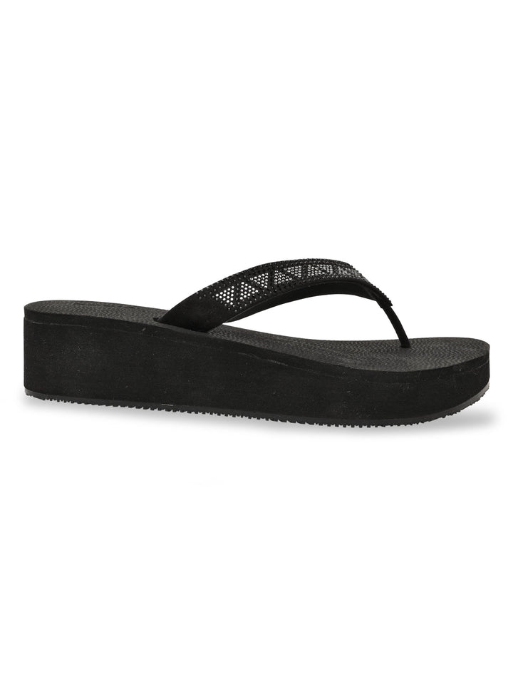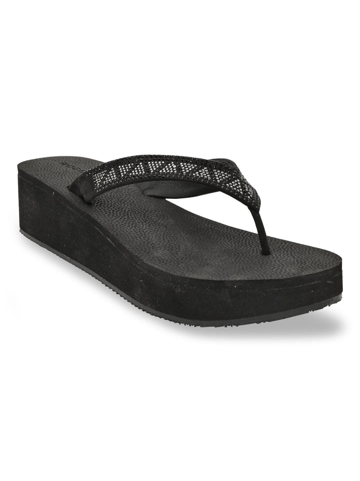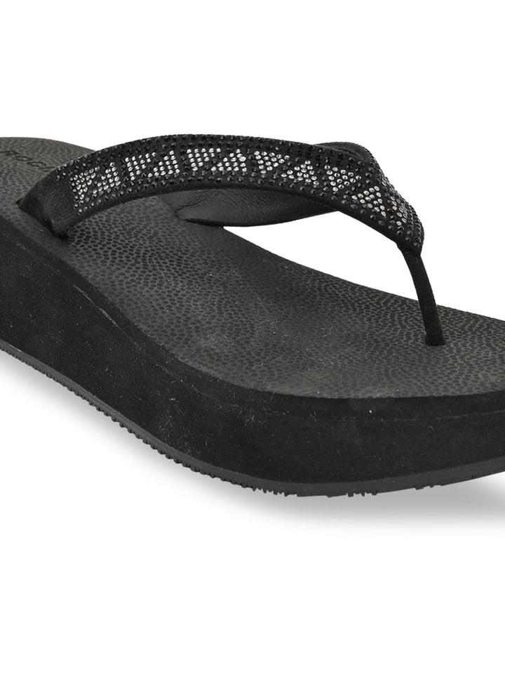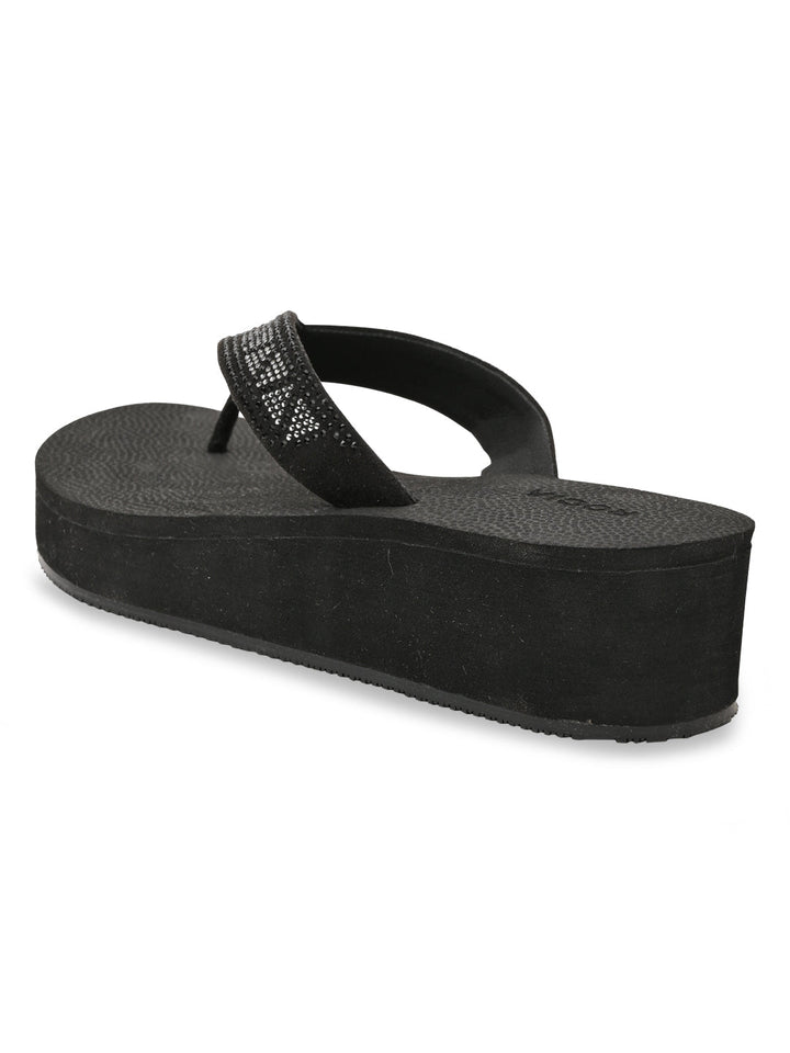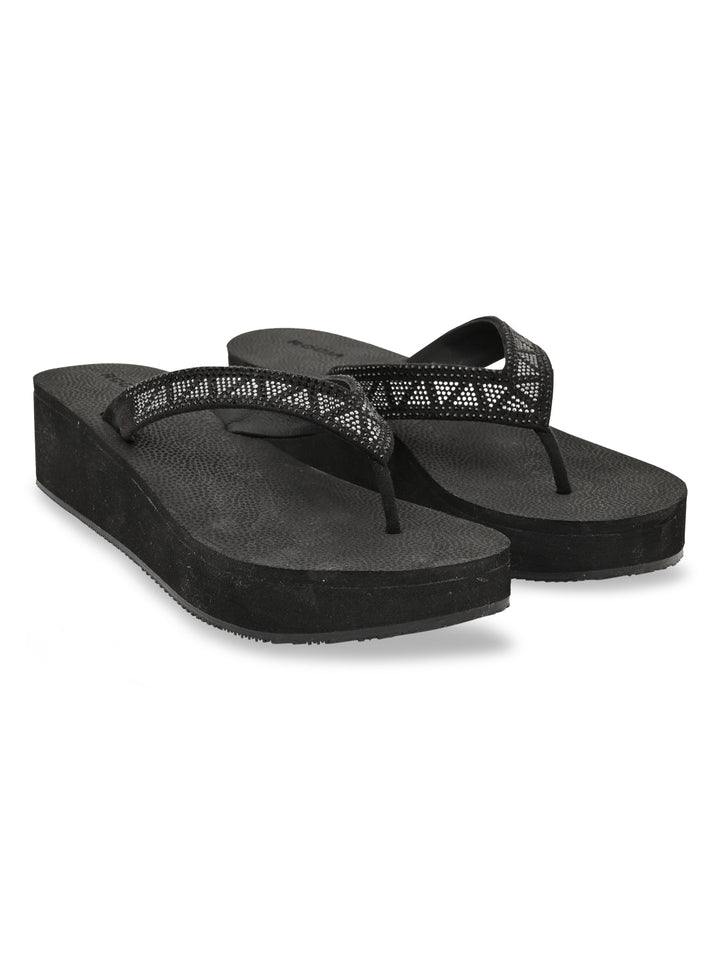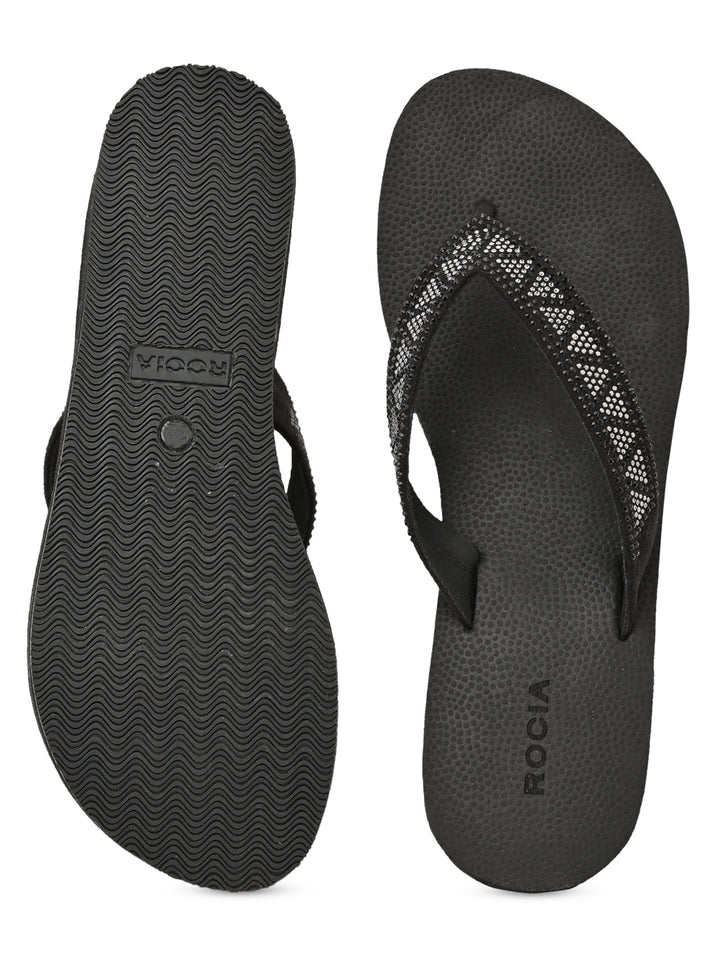 Experience ethnic elegance with Rocia by Regal Black and Brown Women Diamond Studded Thong Wedges. These 2.5-inch synthetic wedge heels feature TPR soles, slip-on closure, and open round toes in an ethnic casual style ideal for summer.