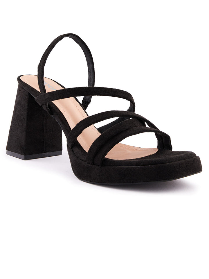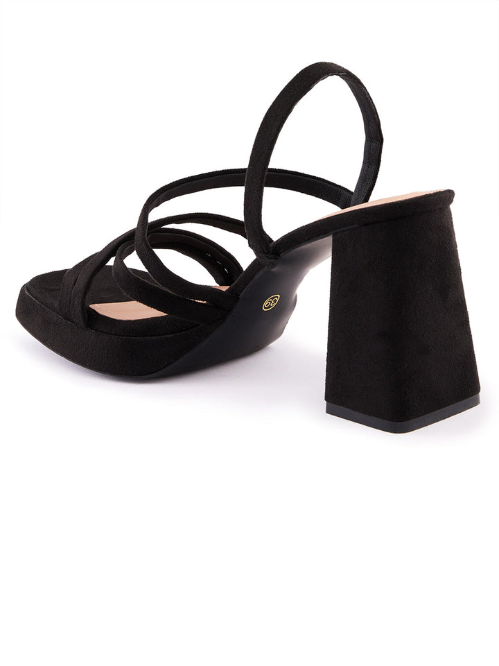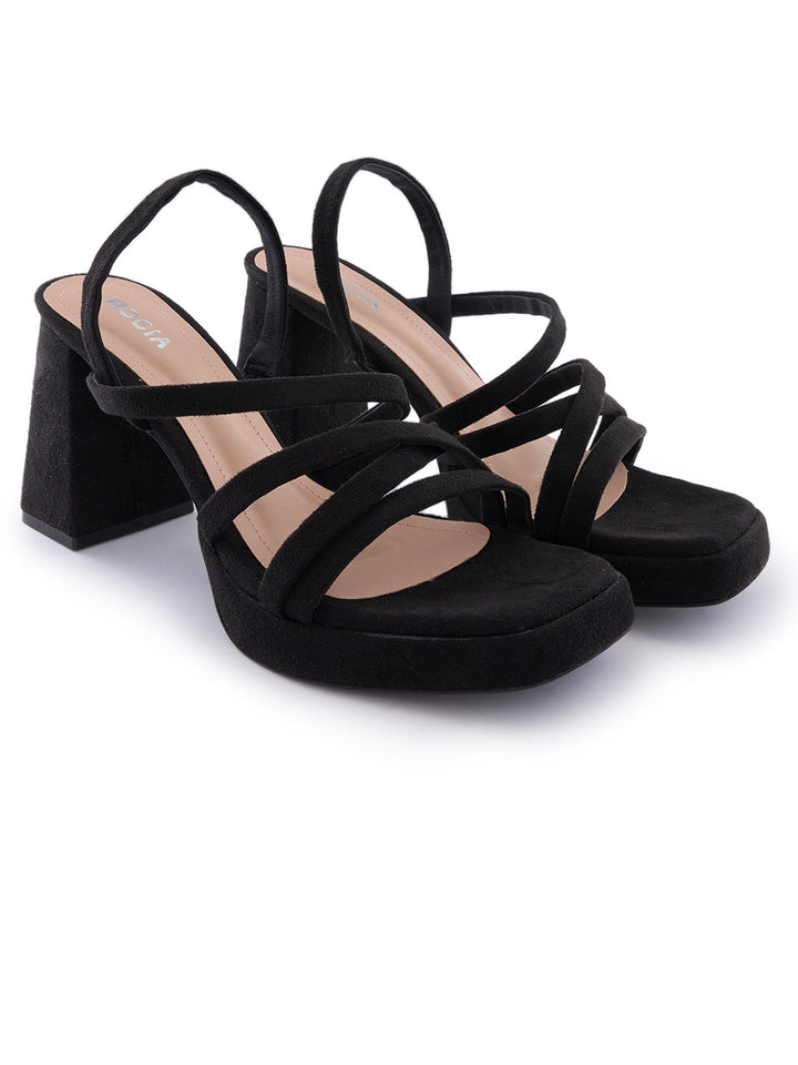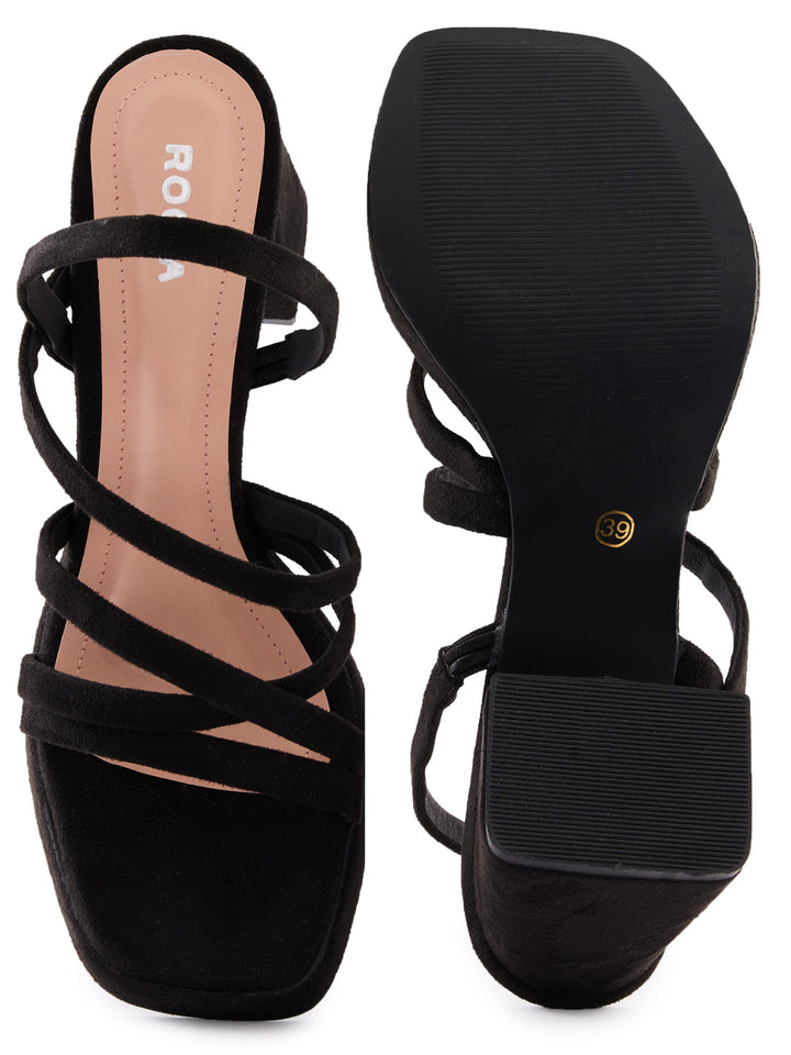Channel chic summer vibes with Rocia by Regal Strappy High Block Heel Sandals in Black and Gold. These 3.5-inch synthetic block heels feature rubber soles and sling back closures with square open toes, designed for casual summer elegance.