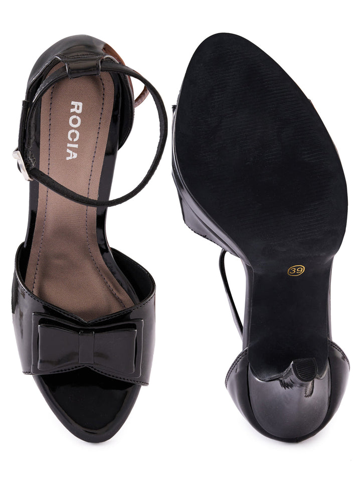 Turn heads with Rocia by Regal Stylish Bow Stiletto Heels. These 4-inch synthetic heels feature rubber soles, ankle strap buckle closures, and an open round toe, offering a perfect blend of elegance and summer party-ready style.