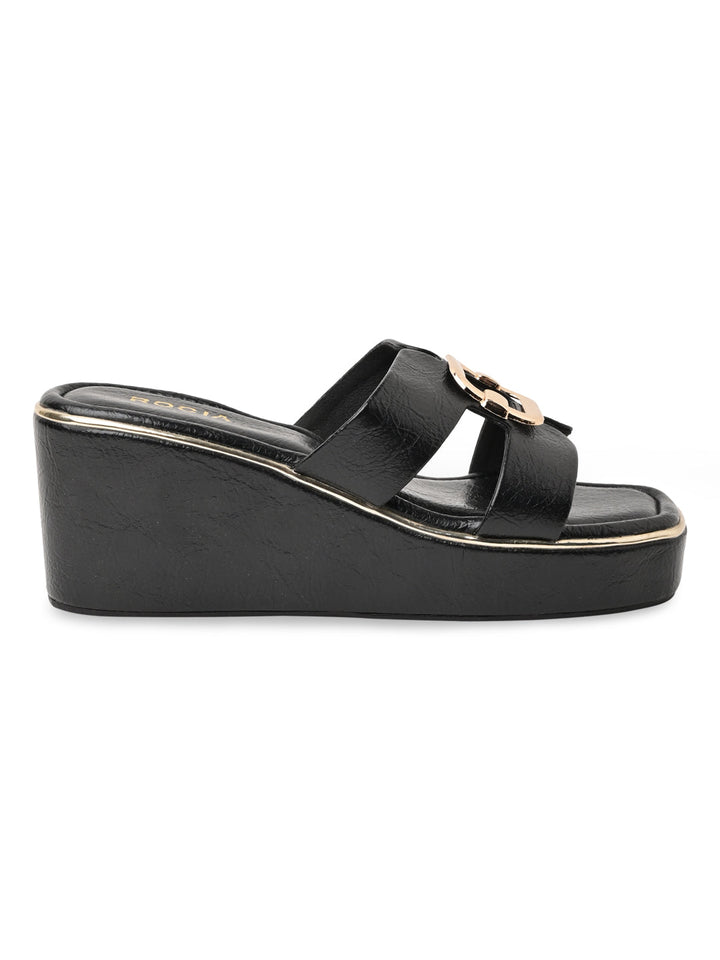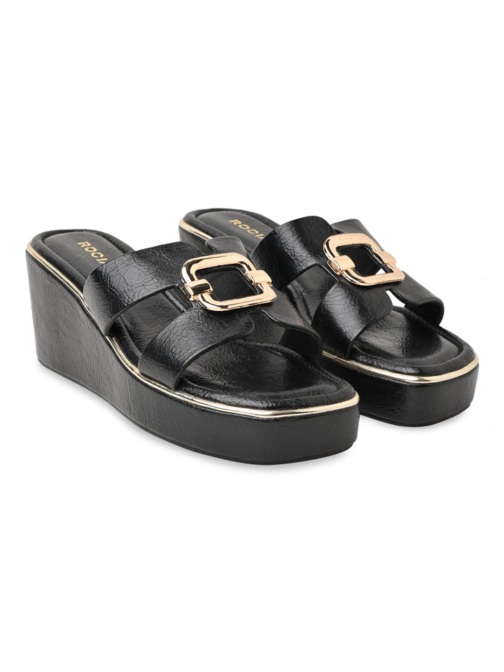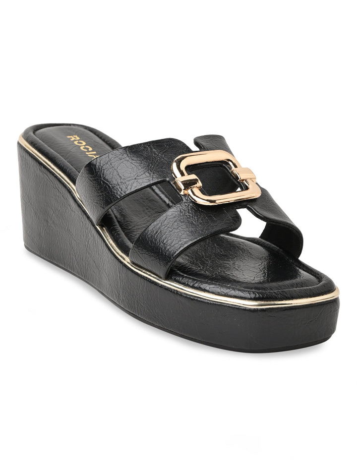 Step out in confidence with the Women Stylish H Platforms by Rocia by Regal. Crafted with synthetic uppers and durable PU soles, these platform sandals bring effortless style to your casual wardrobe. Featuring a trendy platform heel of 3 inches, open square toe, and slip-on design, they are perfect for summer outings and casual occasions. Add height without compromising on comfort and shine in these versatile slip-ons—ideal for upgrading your everyday footwear collection.