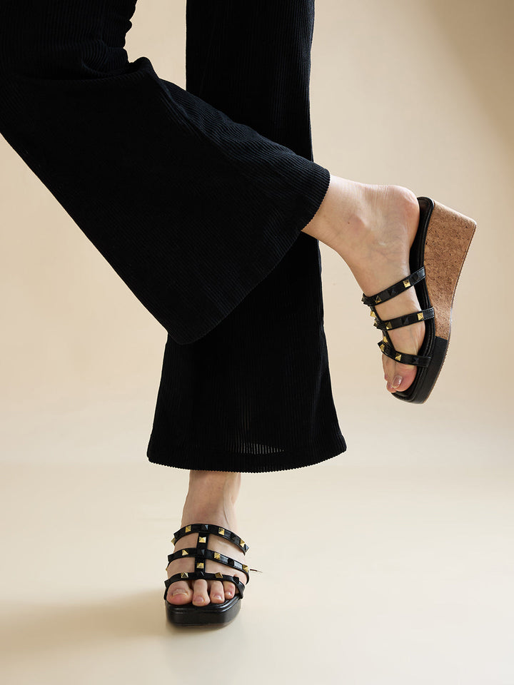 Step into Rocia Women's T-strap Studded Platform Sandals, where style meets sophistication. Elevate your style without compromising comfort. The wedge heel provides stability and support, making these platforms ideal for all-day wear for those who like the height with comfort. Perfect for your shoe capsule closet. Heel Height: 3.5 Inches