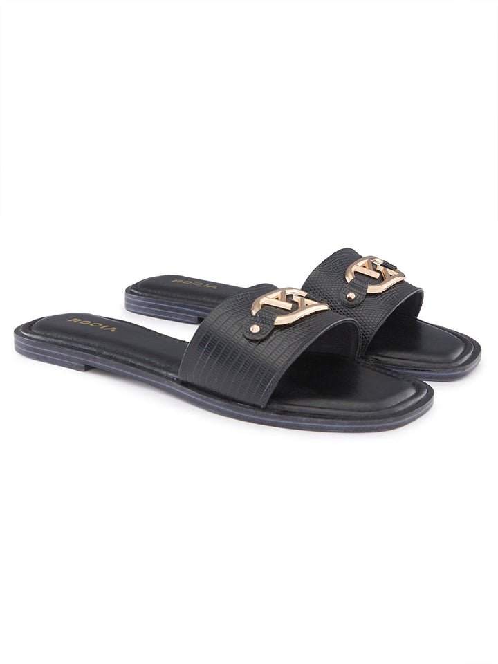 Add a touch of elegance to your casual wardrobe with Rocia Women Textured Buckled Sliders. These chic sliders feature a beautifully textured upper, complemented by a sophisticated buckle detail that adds a modern twist to a classic old money design. With a comfortable, cushioned footbed and easy slip-on style, these sliders are perfect for effortless everyday wear. The versatile design makes them ideal for pairing with anything from casual jeans to flowy summer dresses, ensuring you stay stylish and comfortable all day long. Perfect for those who appreciate both fashion and functionality. Heel Height: 1 inch Heel Height: 1 inch