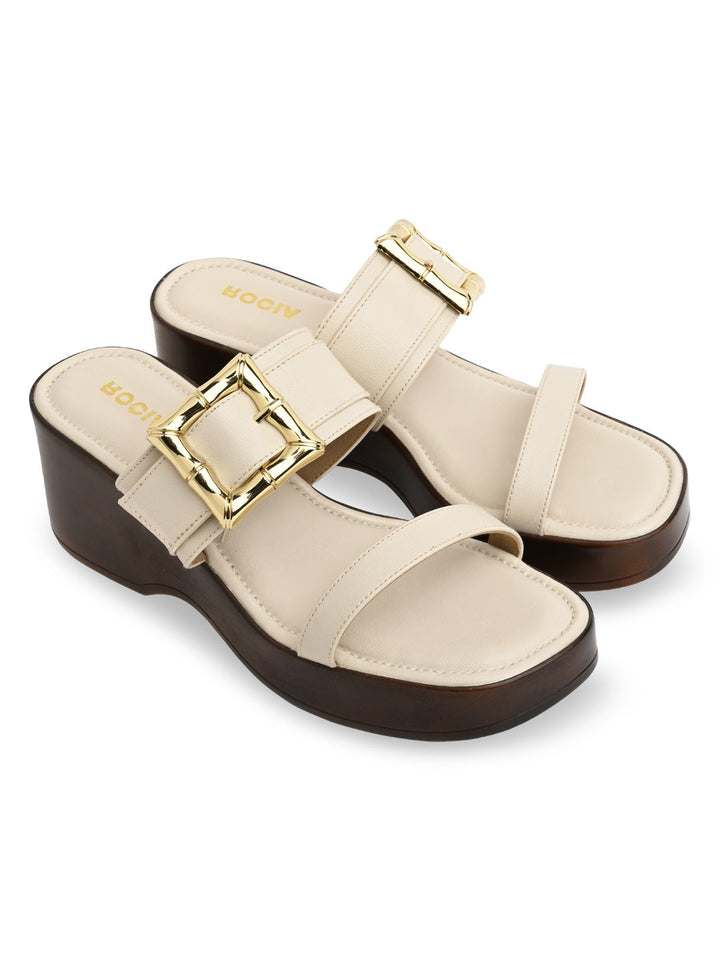 Elevate your look with the Rocia By Regal Women Buckled Platforms. Crafted from synthetic materials with PU soles, these slip-on platform sandals feature stylish buckle details and come in both square and round toe designs. Perfect for casual outings and summer parties.