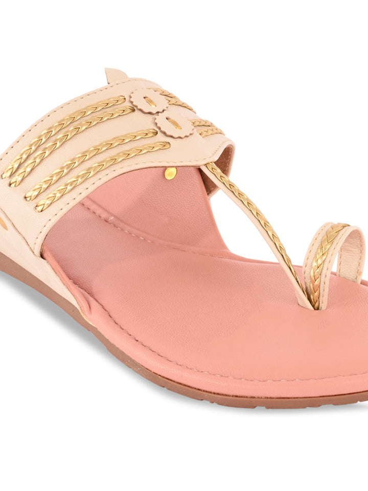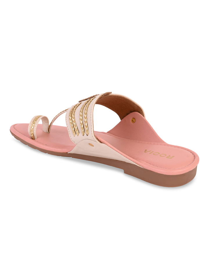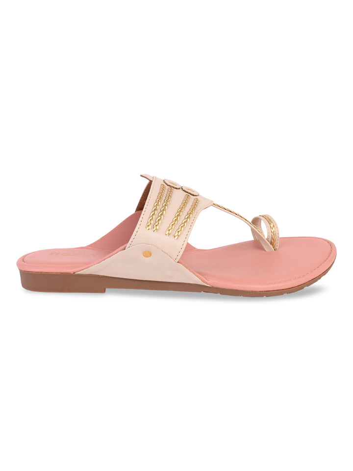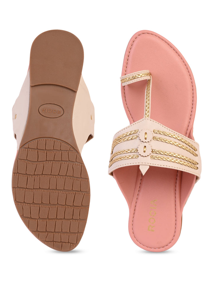 Add a touch of tradition to your casual collection with Women Stylish Flat Kolhapuris from Rocia by Regal. Crafted from synthetic material with a sturdy TPR sole, these strapless open-toe flats combine ethnic charm with modern comfort. With a flat heel designed for ease of wear, they are perfect for casual and summer styling, effortlessly pairing with both ethnic and western outfits.