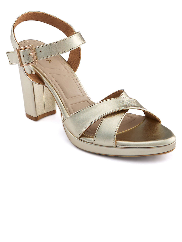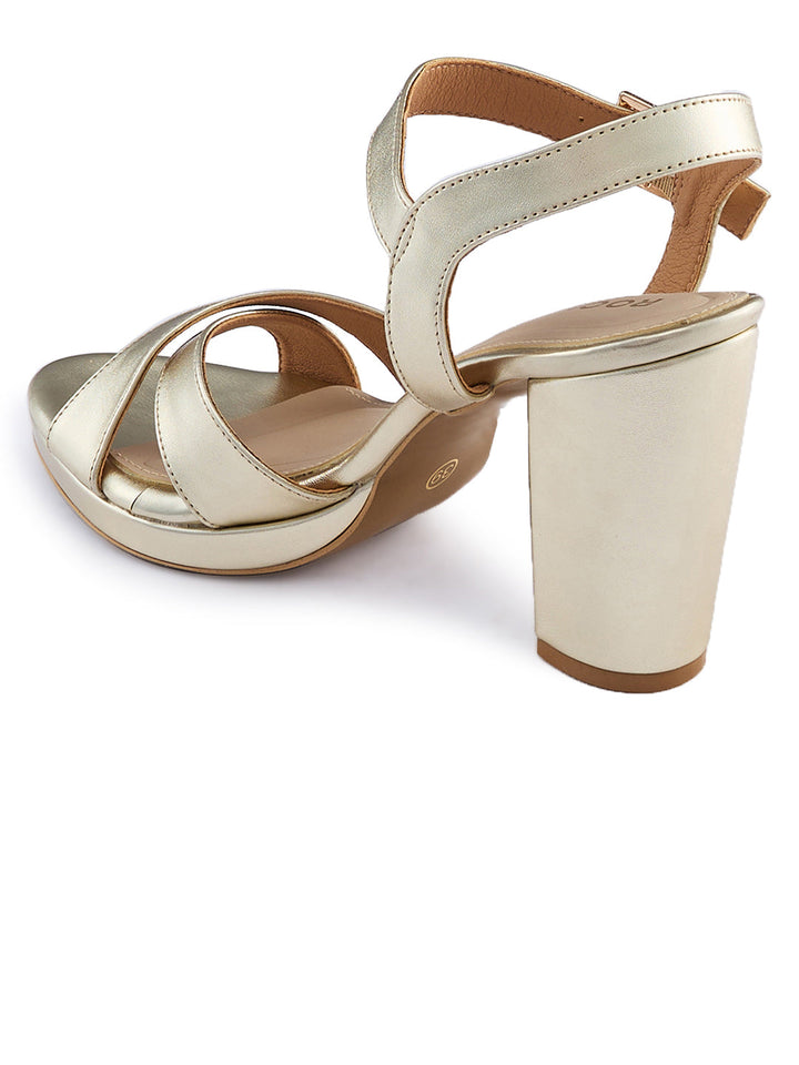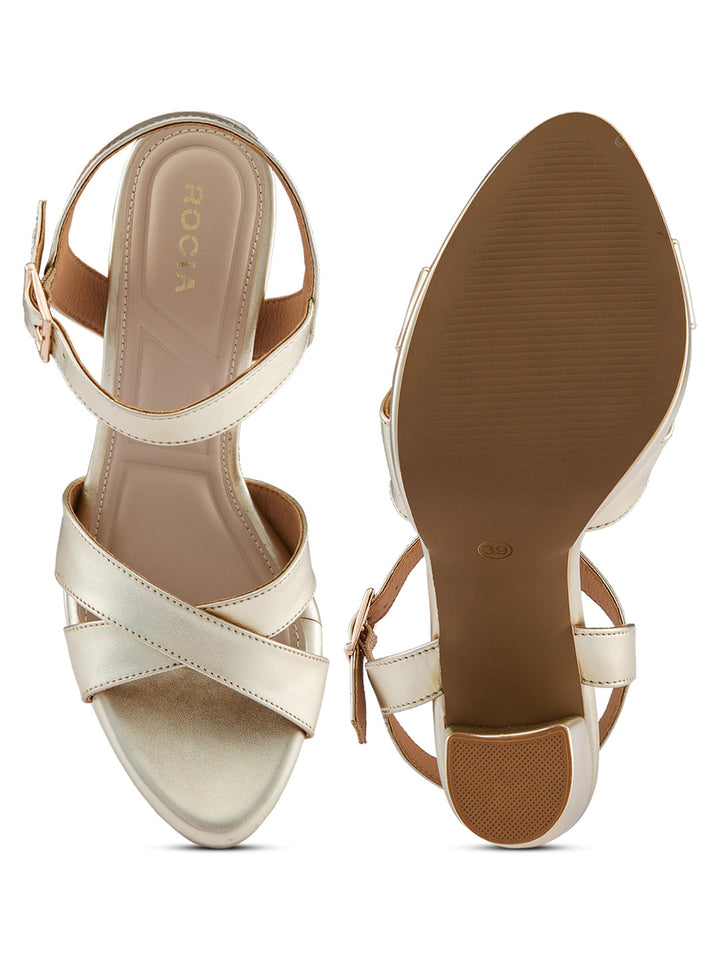 Rocia By Regal Gold Women Classic Criss Cross High Block Heel Sandal