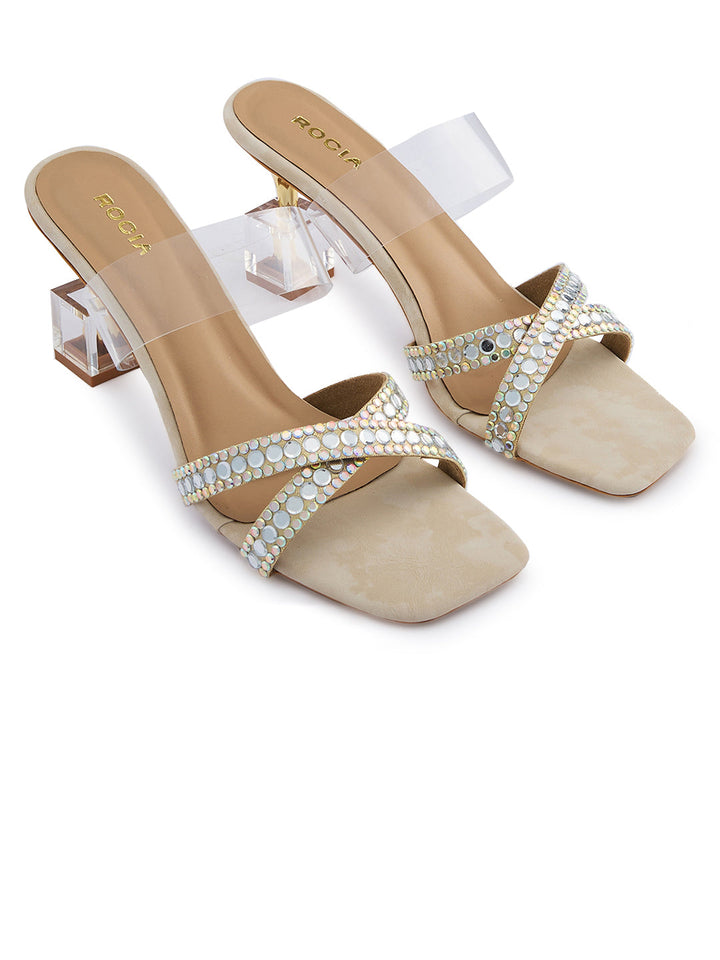 Go bold and playful with these funky criss-cross stilettos adorned with diamond studs. The dynamic strap design adds a fun twist to classic heels, while the sparkle keeps things glamorous. Perfect for parties and high-fashion looks, they bring a burst of confidence to your style. Walk tall, shine brighter.
