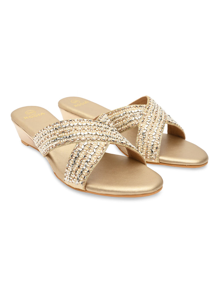 Charm meets craftsmanship in these beautifully embroidered wedges. The detailed designs bring a handcrafted touch, ideal for pairing with ethnic wear. Lightweight and comfortable, they offer effortless grace for any occasion. A lovely fusion of comfort and culture.