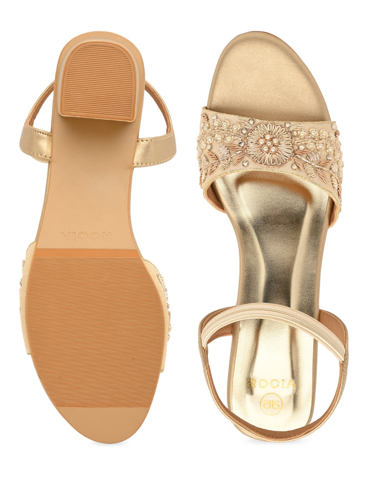 Exude festive flair in these hand-embroidered block heel sandals. The detailed craftsmanship showcases cultural artistry with a fashionable twist. Soft padding and balanced heels make them easy to wear all day. A stunning companion for ethnic celebrations or dressy gatherings.