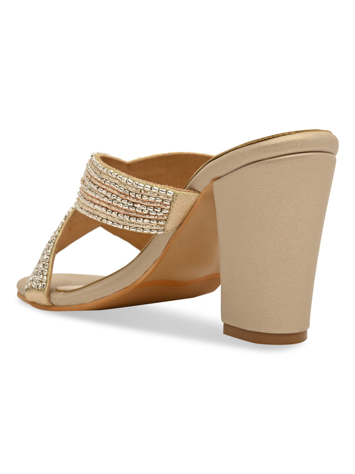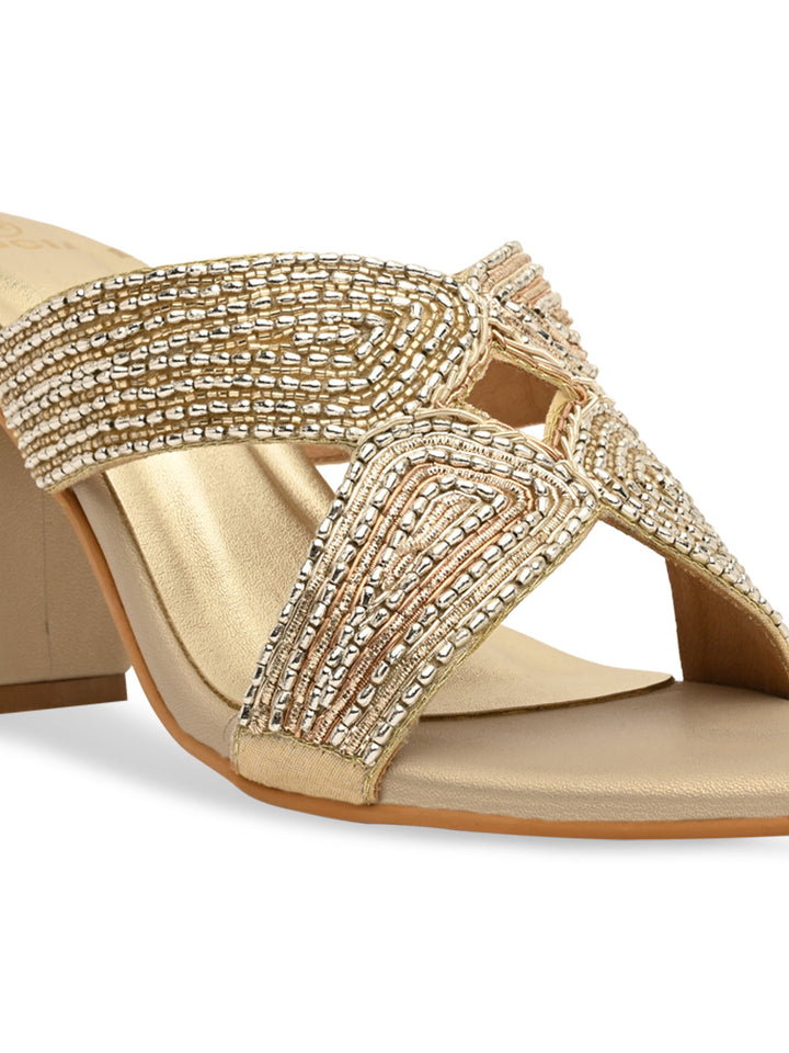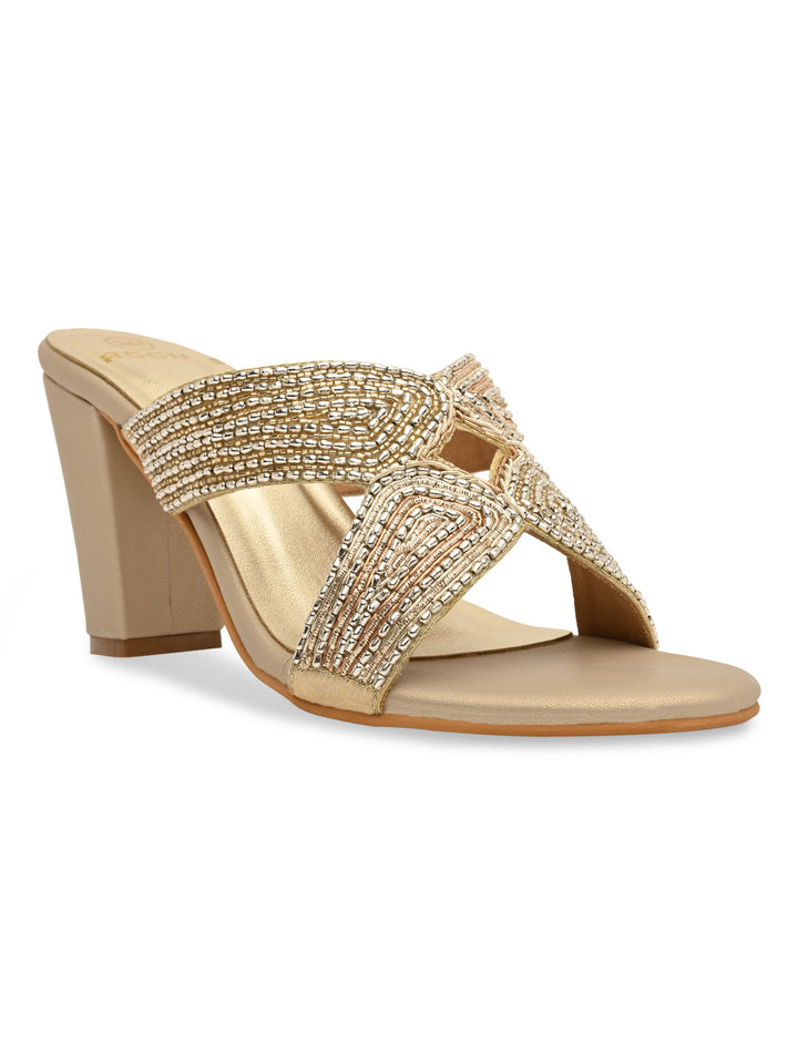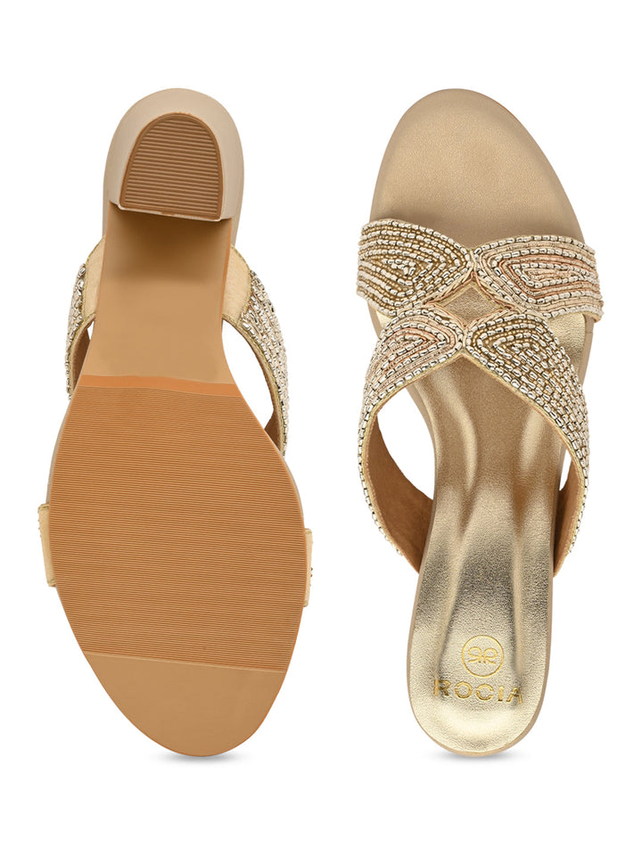 Step into grandeur with these heavily embroidered block heels that radiate elegance. Their intricate patterns and vibrant texture make them a showstopper at any event. The supportive heel adds comfort for hours of wear. Pair them with traditional ensembles for a luxurious finish.