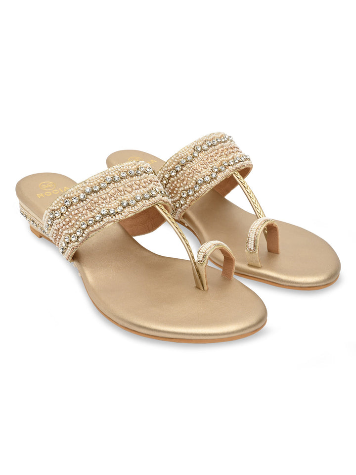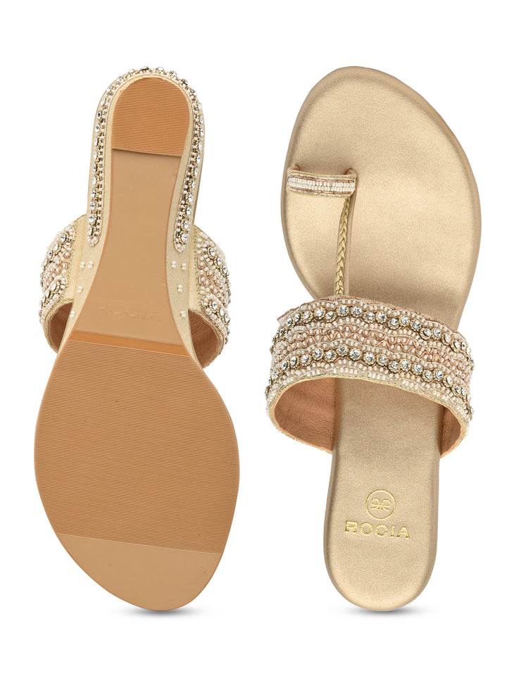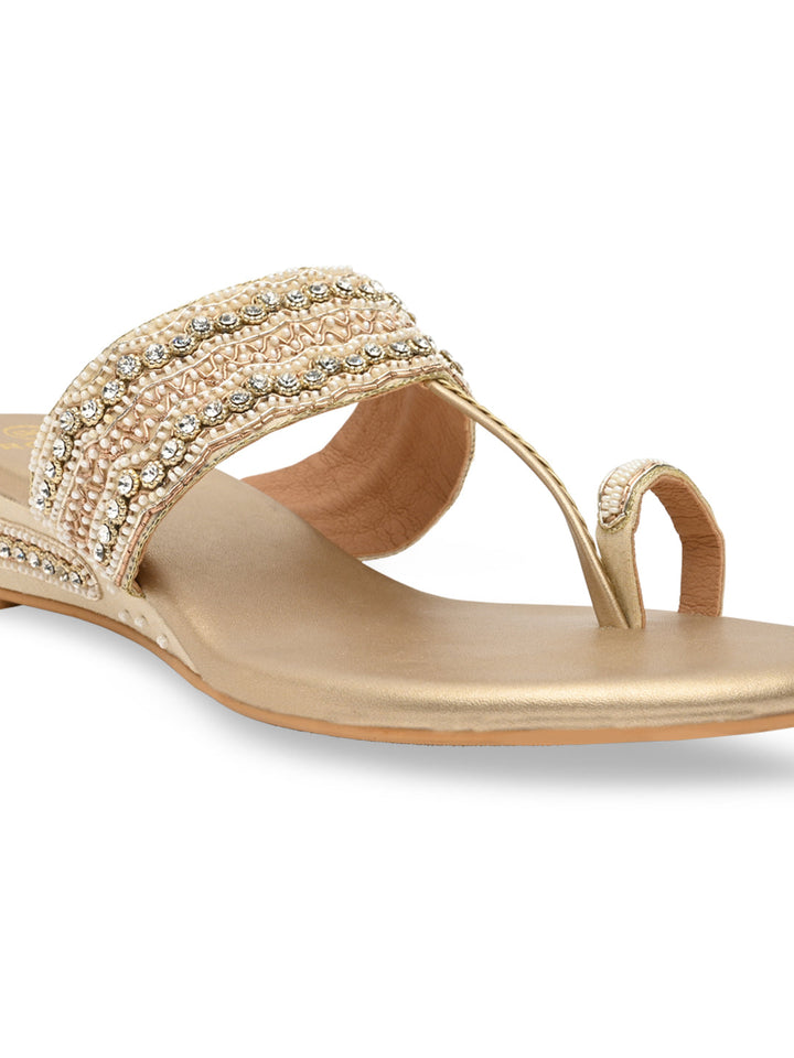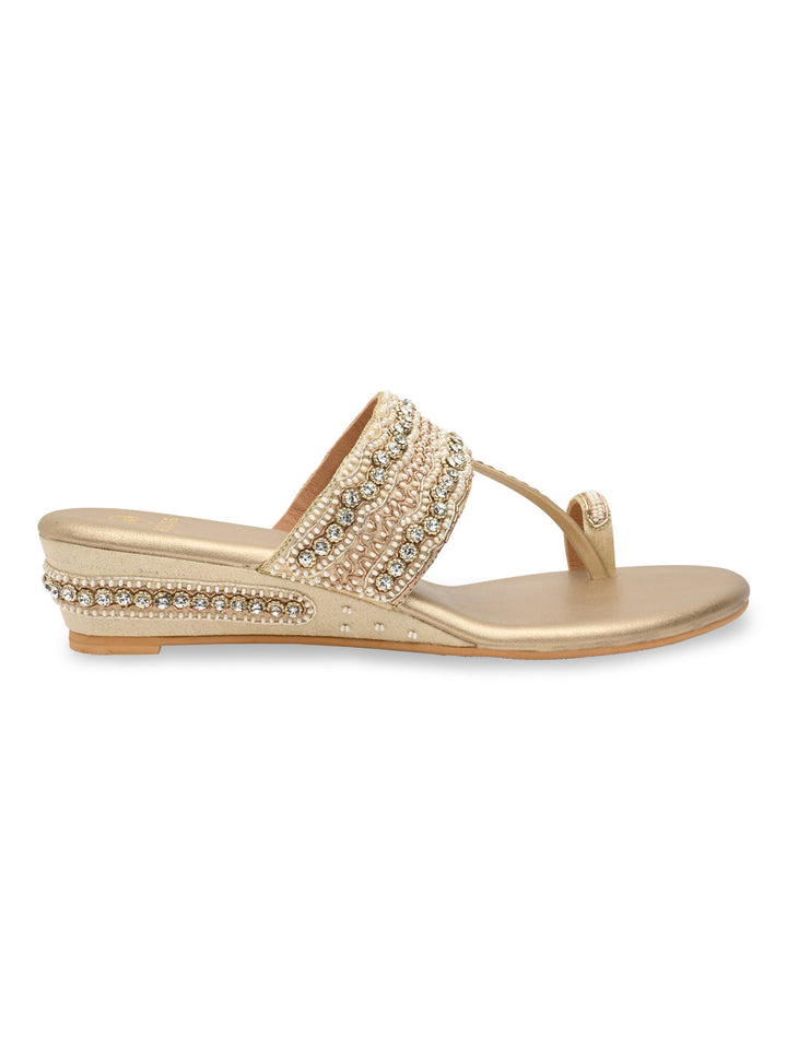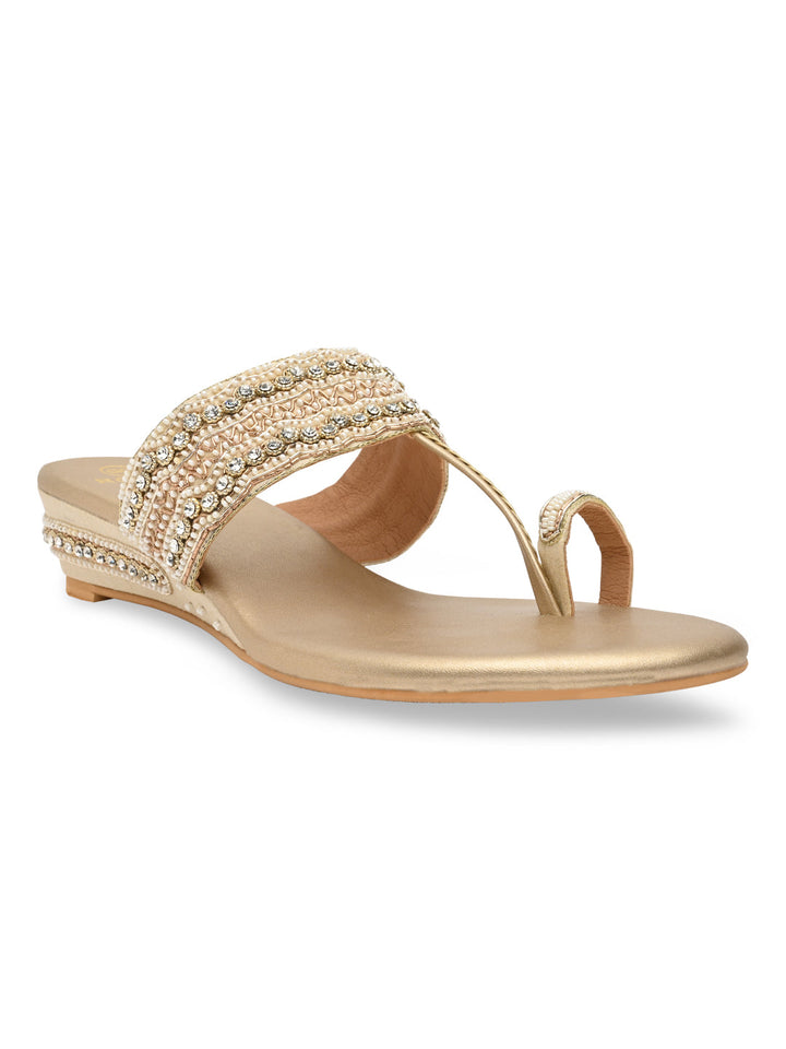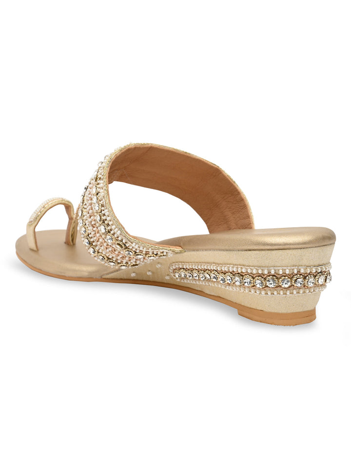 Experience artisanal beauty in these hand-embroidered one-toe wedges. The intricate detailing showcases fine craftsmanship, while the small wedge heel adds gentle elevation for all-day ease. Perfect for festive occasions or ethnic outfits, they bring together elegance and comfort seamlessly. A piece that celebrates traditional charm with a modern twist.