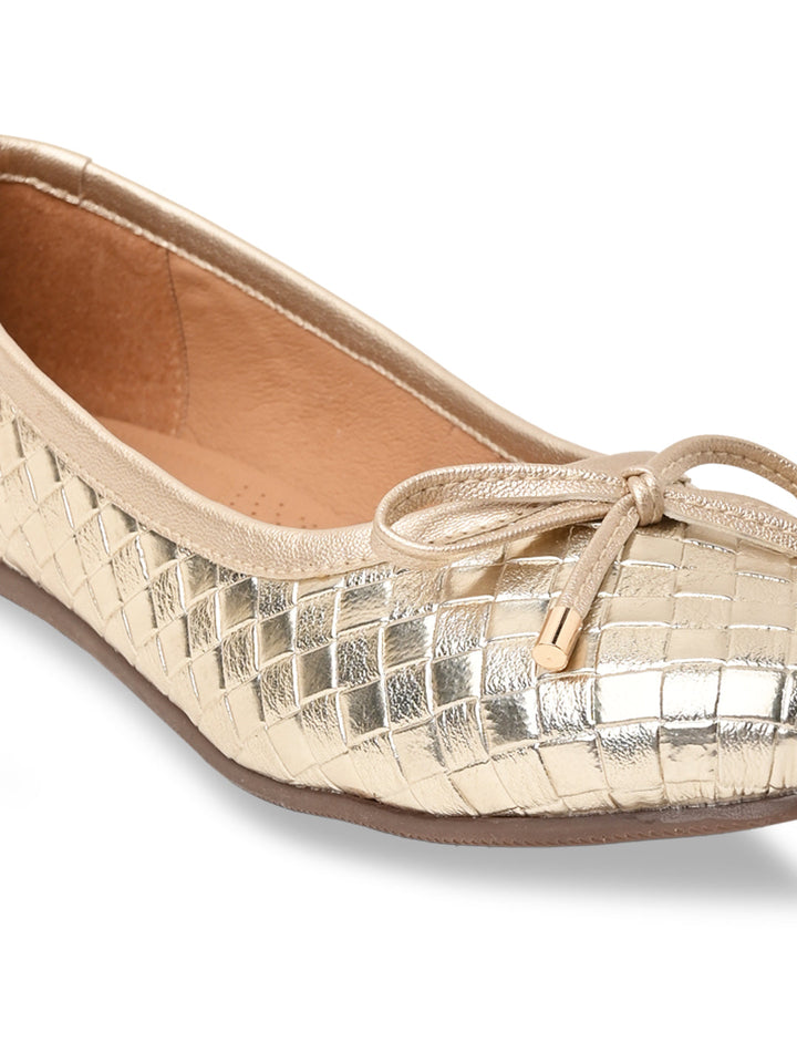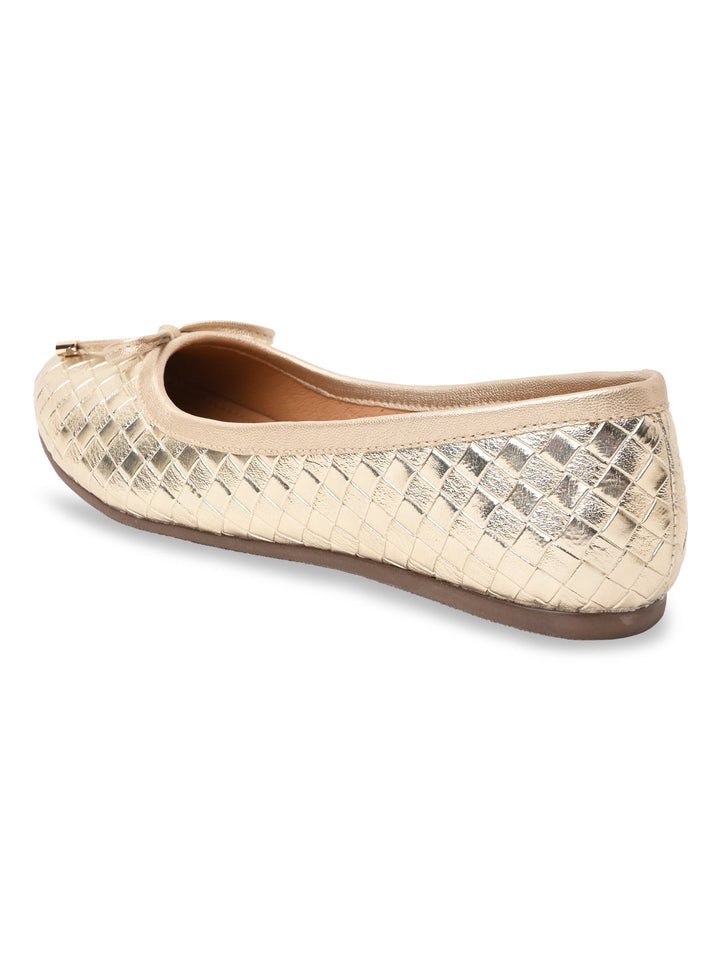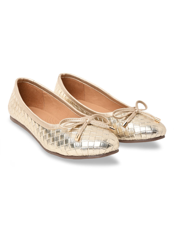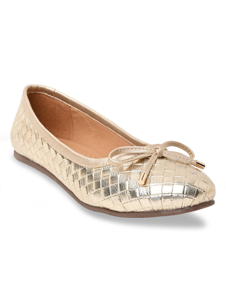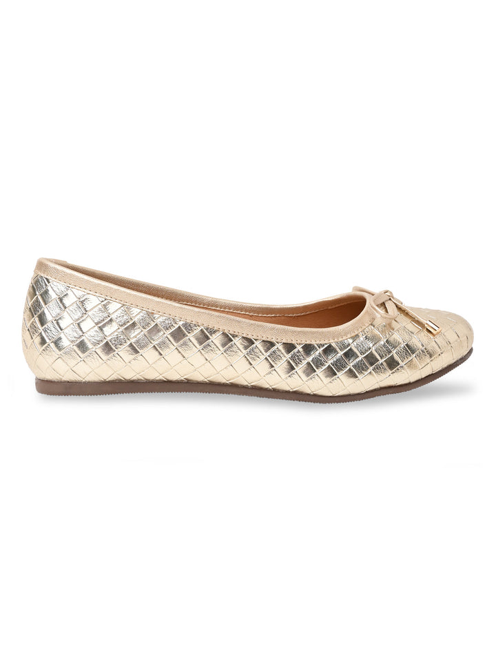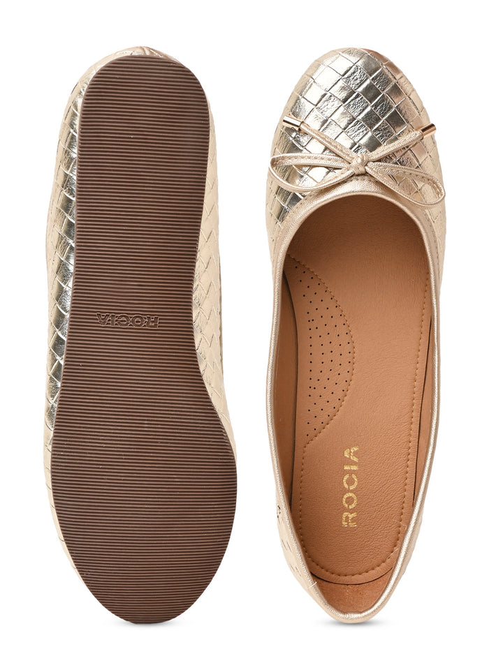 Step out in style with Rocia by Regal Women Woven Metallic Ballerinas in Gold and Gun Metal. These 1-inch synthetic flat shoes feature TPR soles, slip-on convenience, a closed round toe, and a comfortable woven design ideal for casual summer wear.