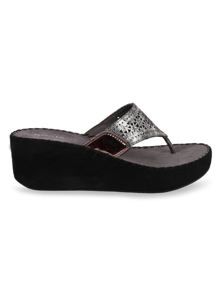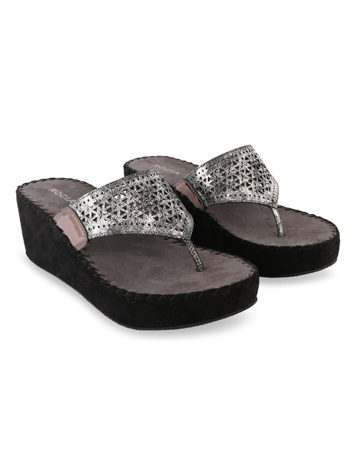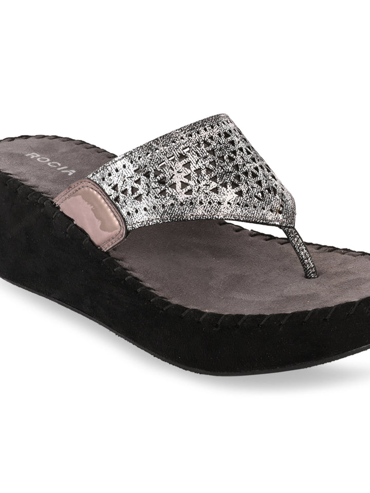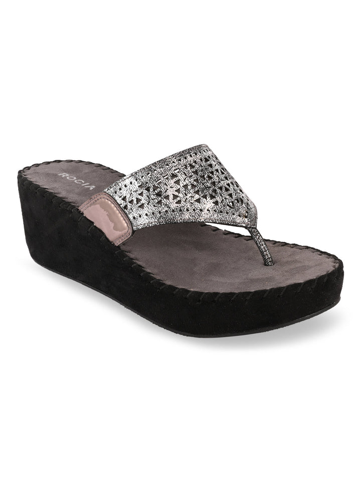 Redefine casual chic with Women Comfort Laser Cut Platforms. Crafted with breathable synthetic material and a sturdy TPR sole, these wedges feature elegant laser-cut detailing for a modern flair. Perfect for summer outings or casual evenings, they combine all-day comfort with effortless style. From Rocia by Regal.
