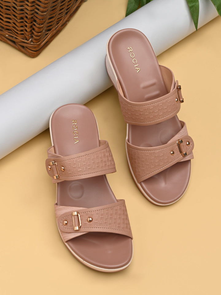 Step into everyday ease with Women Embossed Comfort Wedge Heels. Featuring embossed synthetic detailing and a PU sole, these slip-on wedges deliver both durability and chic appeal. The wedge heel offers stable comfort, making them a versatile choice for casual wear, summer looks, and laid-back styling. From Rocia by Regal.