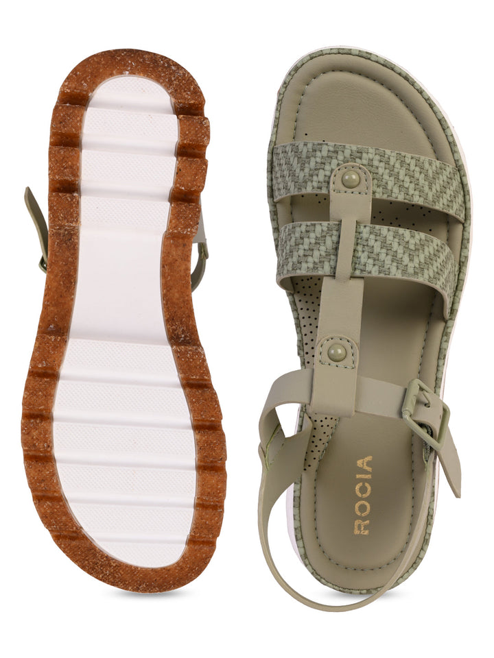 Add a chic touch to your style with Women T-Strap Flat Sandals from Rocia by Regal. Made from synthetic uppers and a sturdy TPR sole, these open-toe flats feature a trendy T-strap design that adds elegance while keeping them comfortable. With their flat heel, they’re perfect for casual wear, comfort-driven looks, and summer outings.