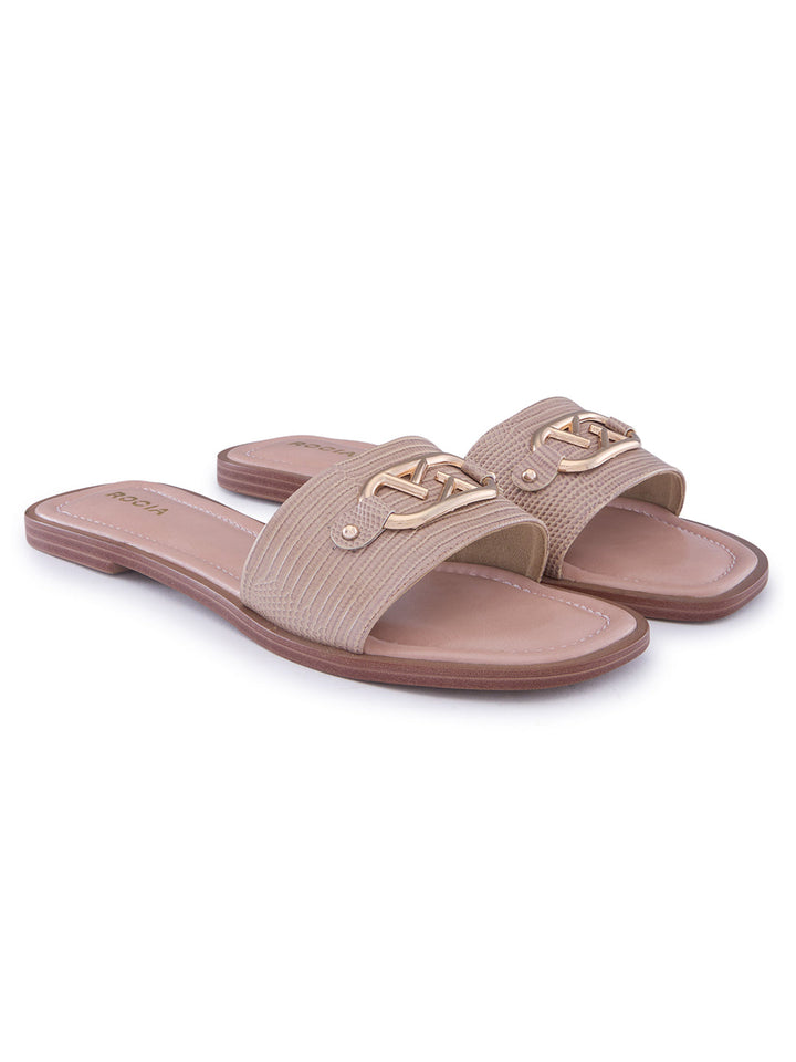 Add a touch of elegance to your casual wardrobe with Rocia Women Textured Buckled Sliders. These chic sliders feature a beautifully textured upper, complemented by a sophisticated buckle detail that adds a modern twist to a classic old money design. With a comfortable, cushioned footbed and easy slip-on style, these sliders are perfect for effortless everyday wear. The versatile design makes them ideal for pairing with anything from casual jeans to flowy summer dresses, ensuring you stay stylish and comfortable all day long. Perfect for those who appreciate both fashion and functionality. Heel Height: 1 inch Heel Height: 1 inch