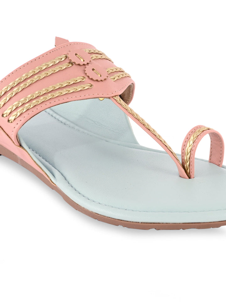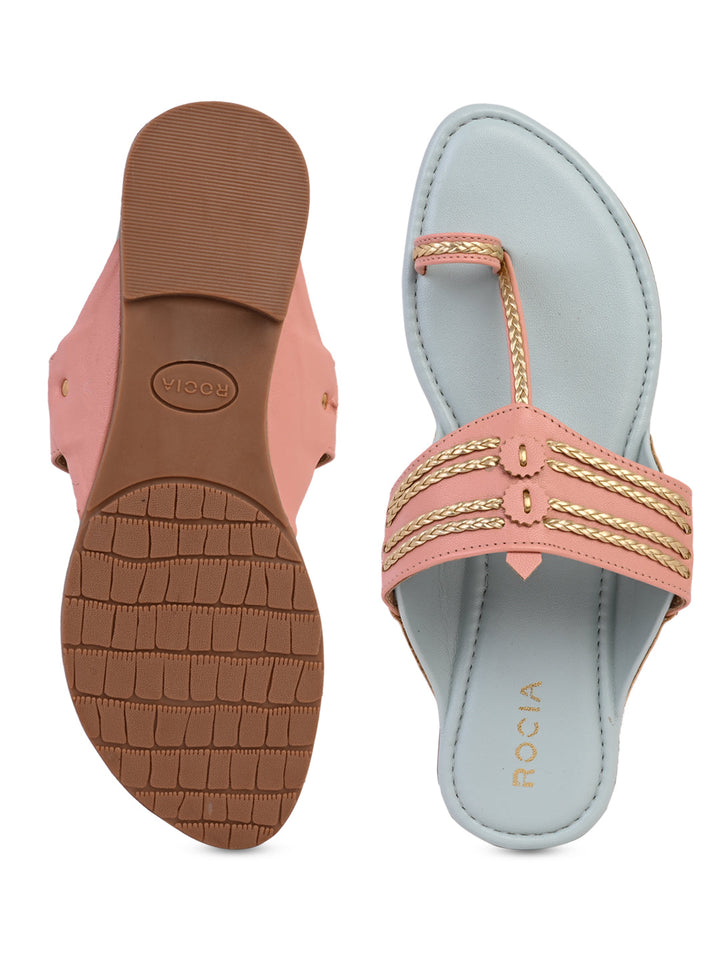 Add a touch of tradition to your casual collection with Women Stylish Flat Kolhapuris from Rocia by Regal. Crafted from synthetic material with a sturdy TPR sole, these strapless open-toe flats combine ethnic charm with modern comfort. With a flat heel designed for ease of wear, they are perfect for casual and summer styling, effortlessly pairing with both ethnic and western outfits.