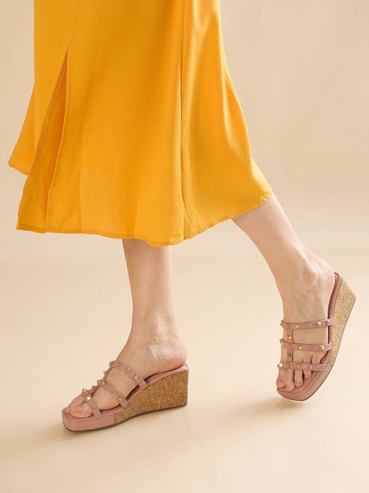 Step into Rocia Women's T-strap Studded Platform Sandals, where style meets sophistication. Elevate your style without compromising comfort. The wedge heel provides stability and support, making these platforms ideal for all-day wear for those who like the height with comfort. Perfect for your shoe capsule closet. Heel Height: 3.5 Inches