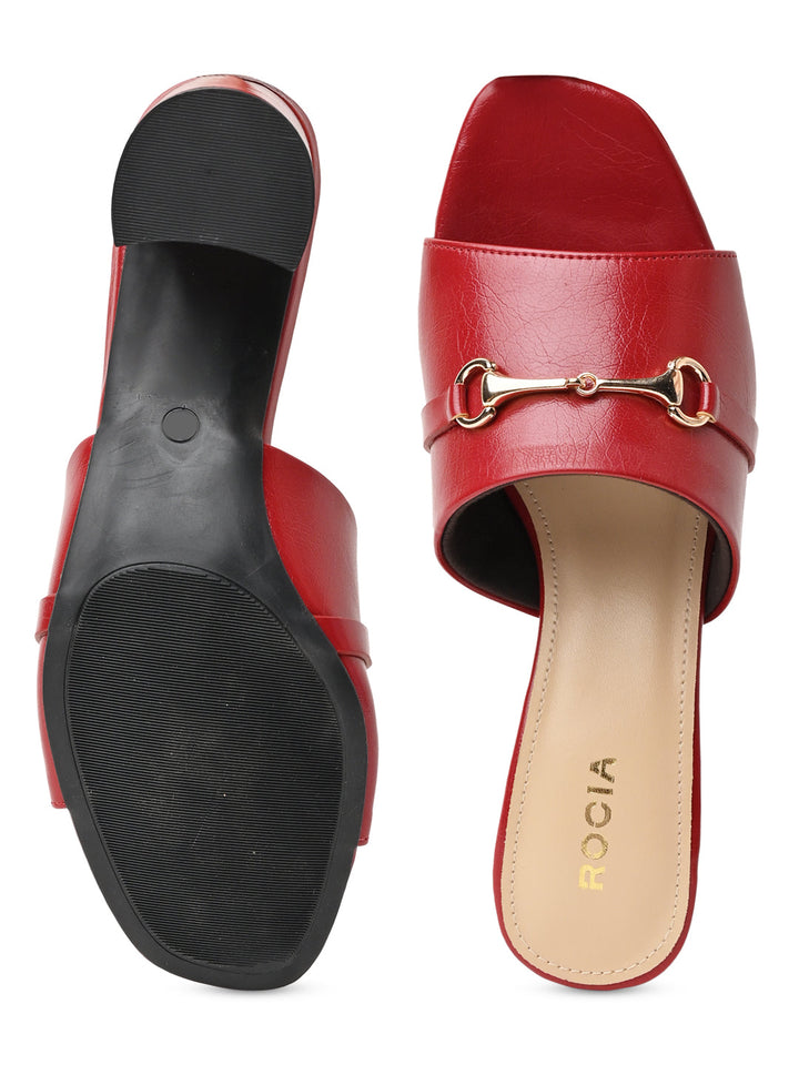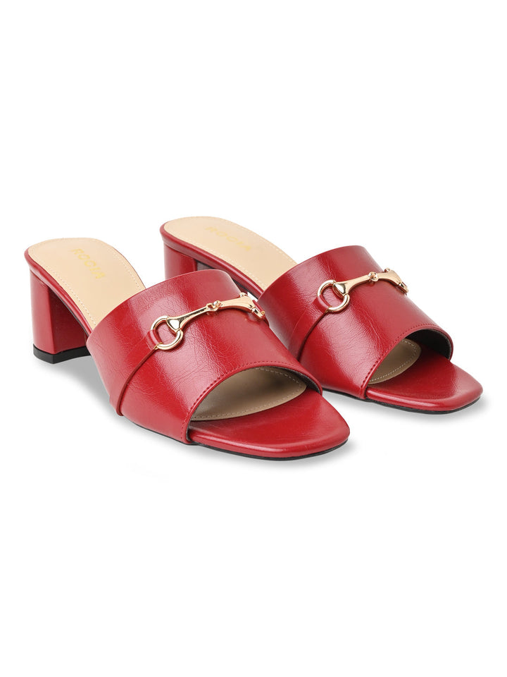 Step out in style with Rocia by Regal Women Buckled Block Heel Slip Ons. These slip-on platform heels combuckled block heels, slip-on heels, casual block heel sandals, women’s summer heels, Rocia footwear with synthetic uppers, PU or rubber soles, open round toes, and buckled accents, perfect for casual and summer occasions.